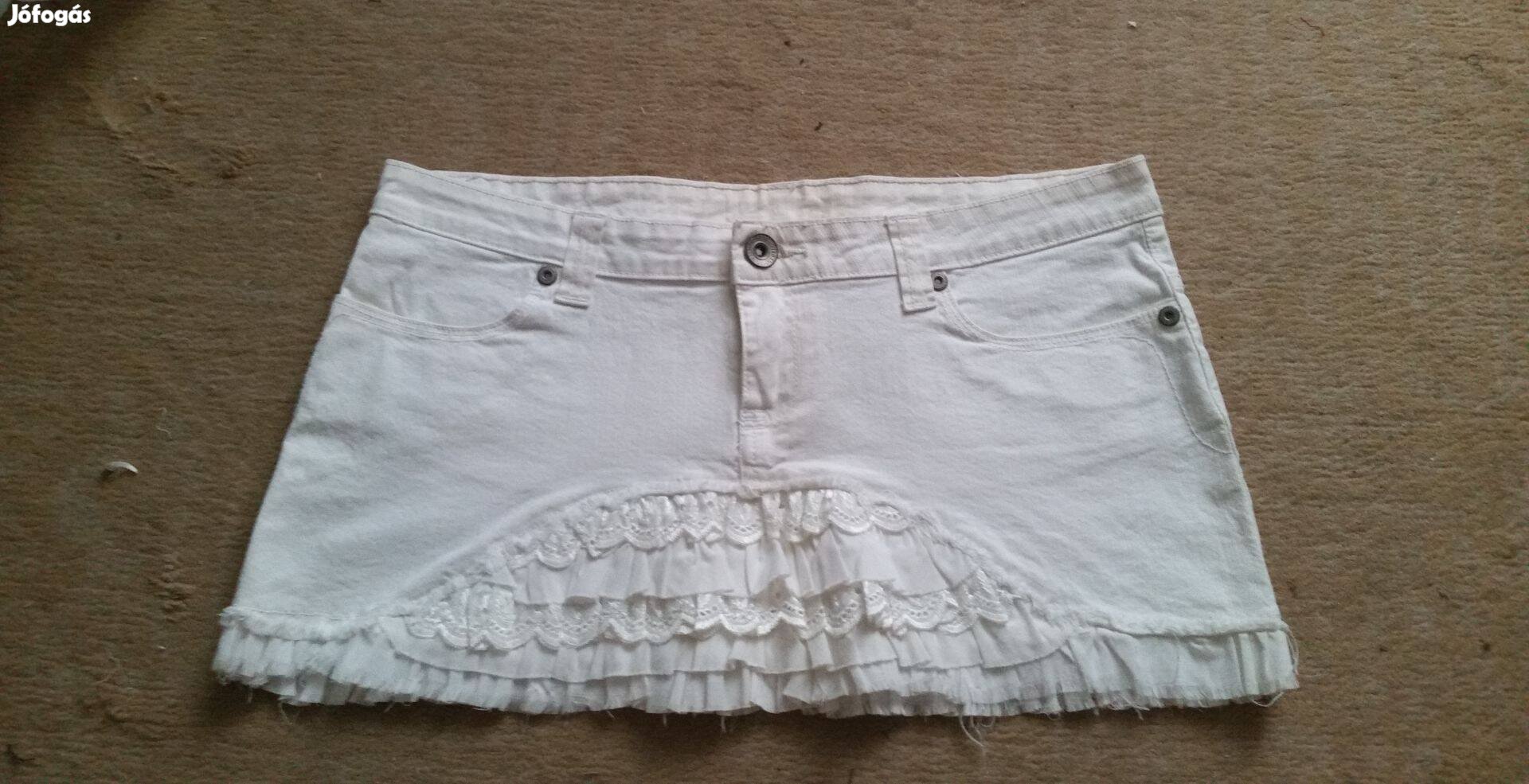 Fehér farmer miniszoknya alul csipkével díszítve M-L méretű új állapotú 2500 Ft-ért eladó.