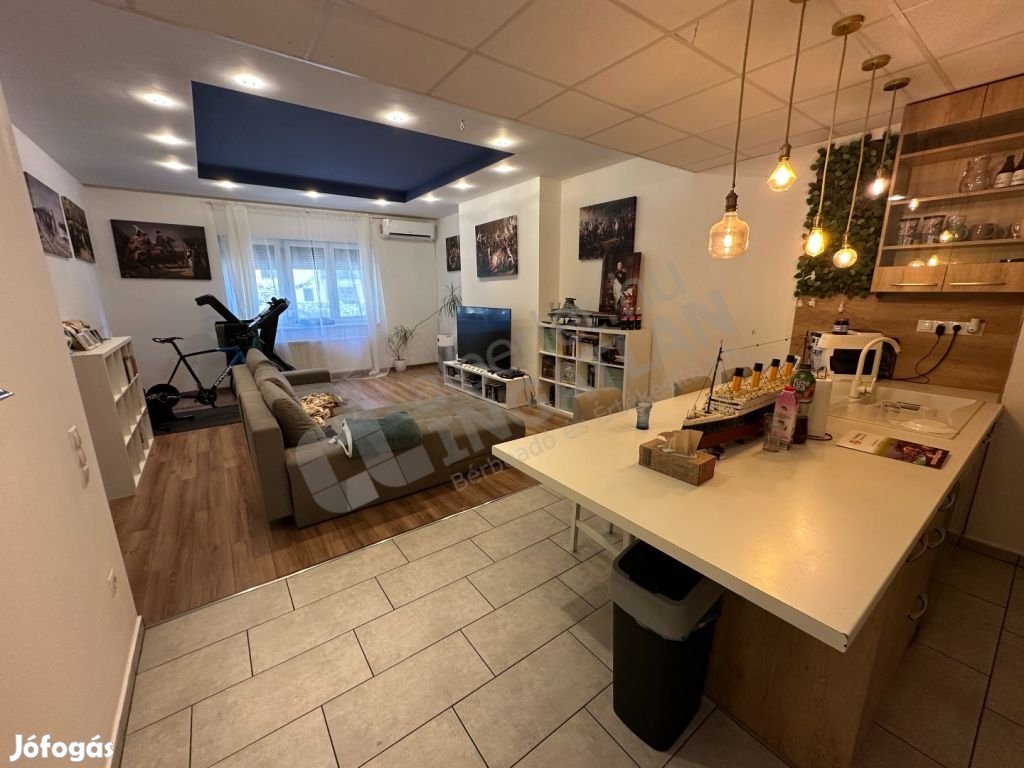 Beépített bútorokkal és gépekkel eladó.
