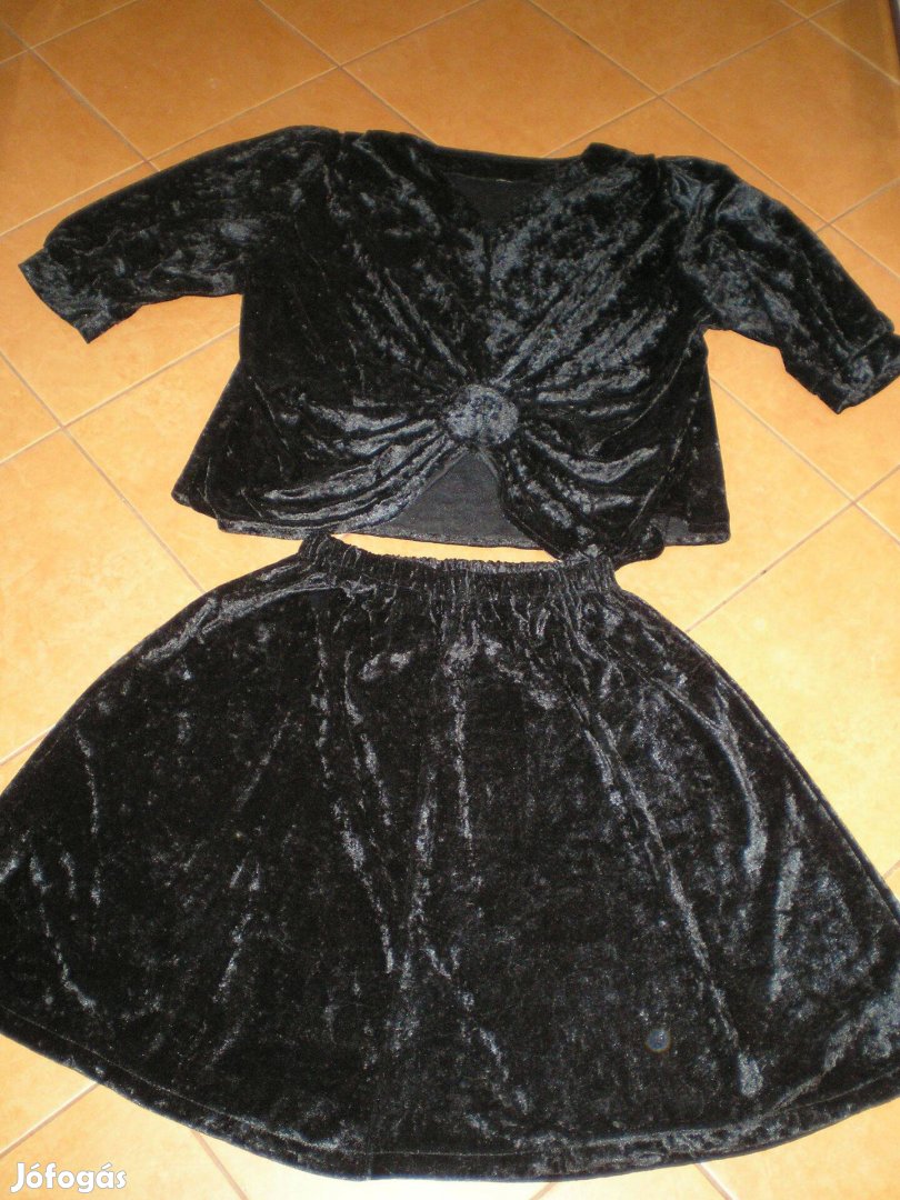 Fekete bársony kétrészes elegáns női ruha XL-es XL újszerű