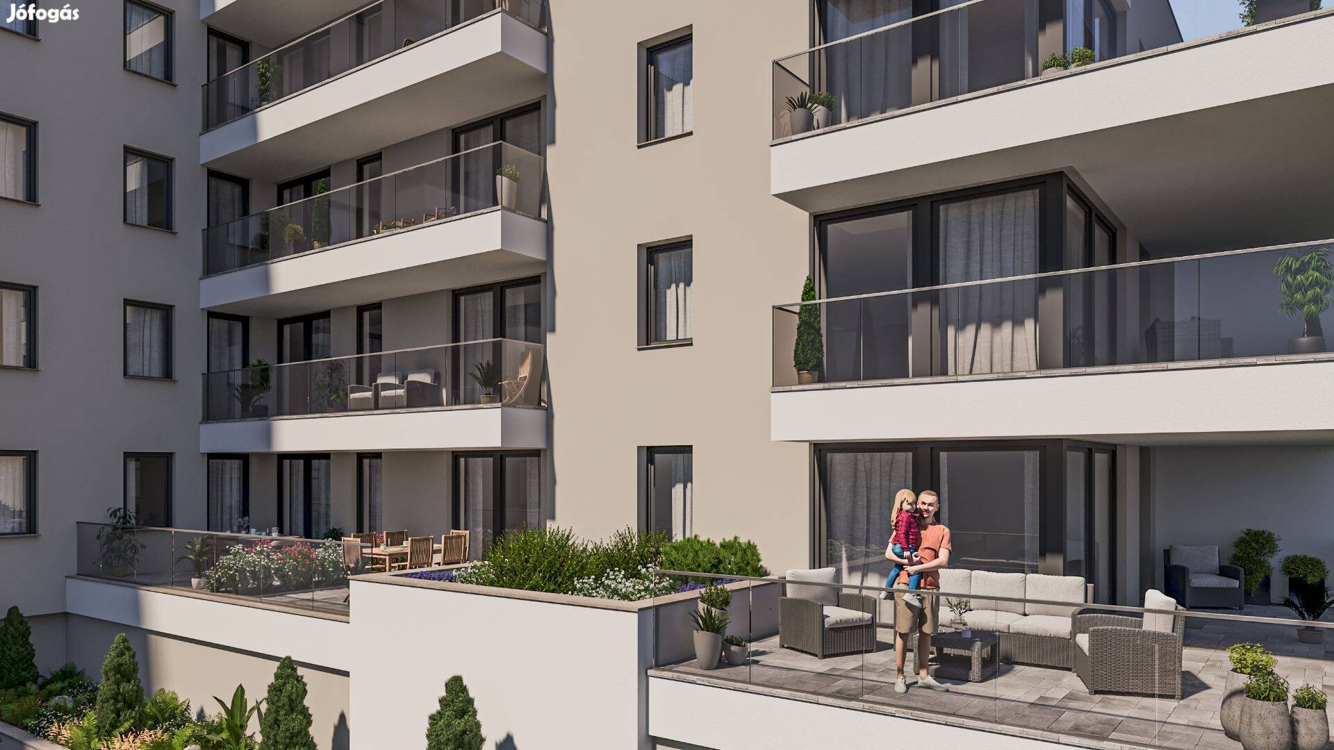 A XIII. kerület kedvelt részén, a Frangepán utcában modern, kulcsrakész lakások eladók egy liftes, teremgarázzsal rendelkező társasházban.