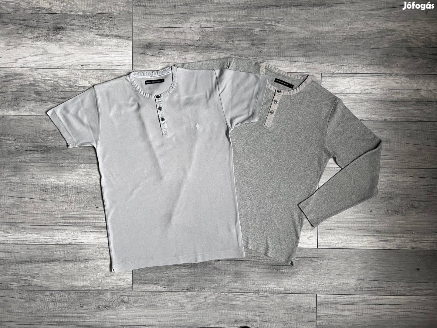 Eladó két szuper French Connection póló szettben: egy rövid ujjú és egy hosszú ujjú, mindkettő világosszürke.