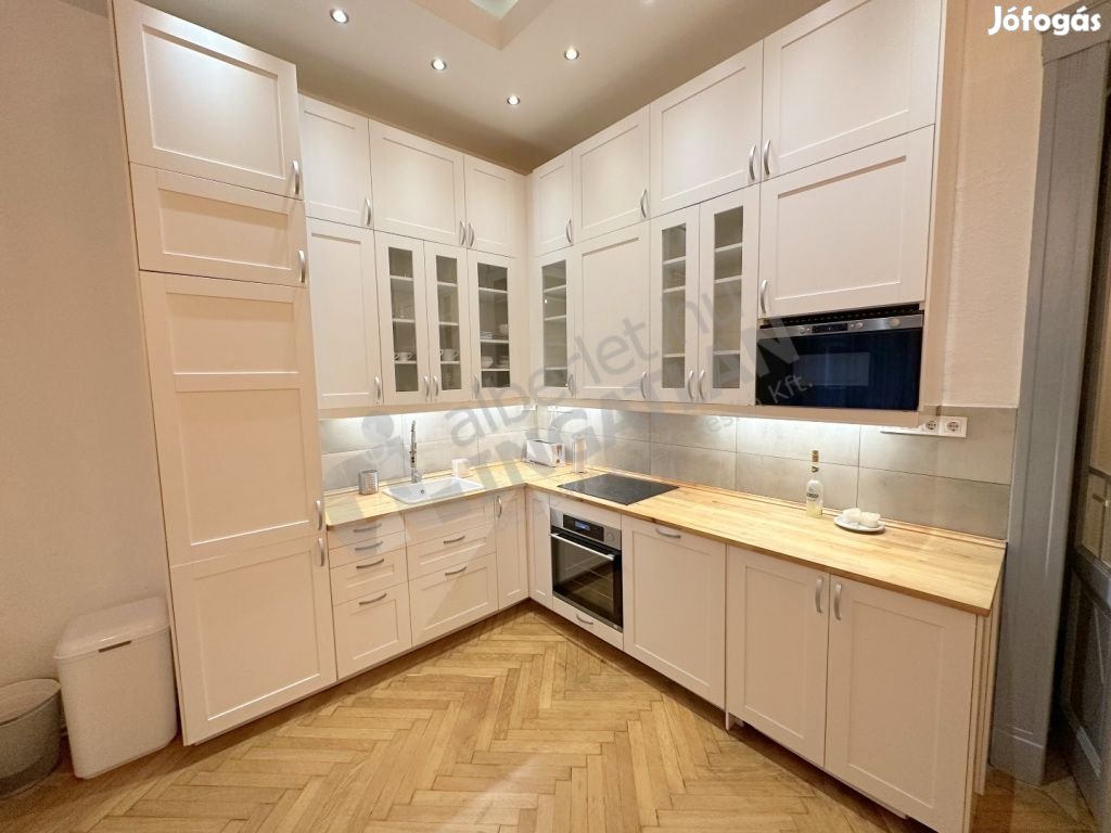 Haris közben kiadó egy két hálószobás, berendezett, elegáns, de otthonos polgári lakás.