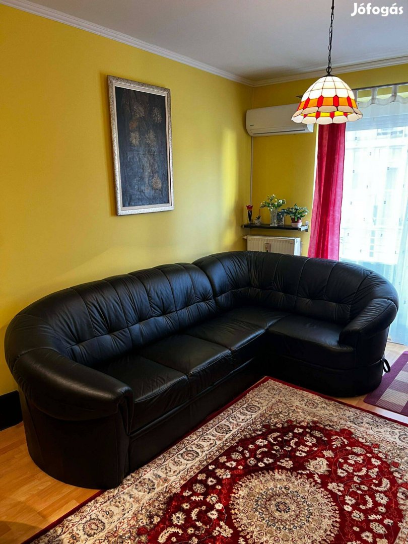 Valódi bőr, ágyazható, ágyneműtartós, sarokgarnitúra, megkímélt állapotban, hibátlan felülettel.