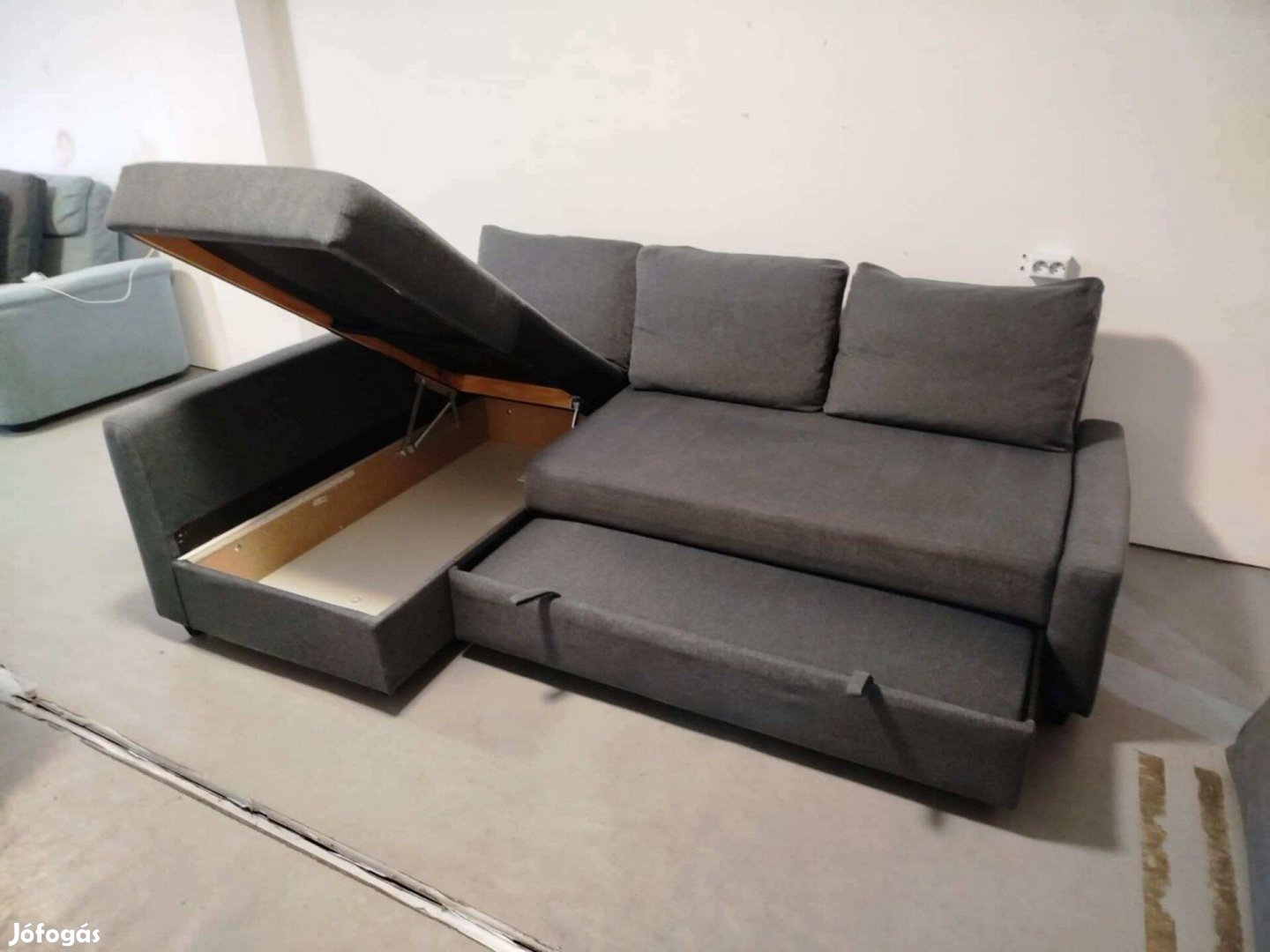 IKEA Friheten típusú ágyazható sarokkanapé tárolóval, Hyllie szürke színű szövet kárpittal.
