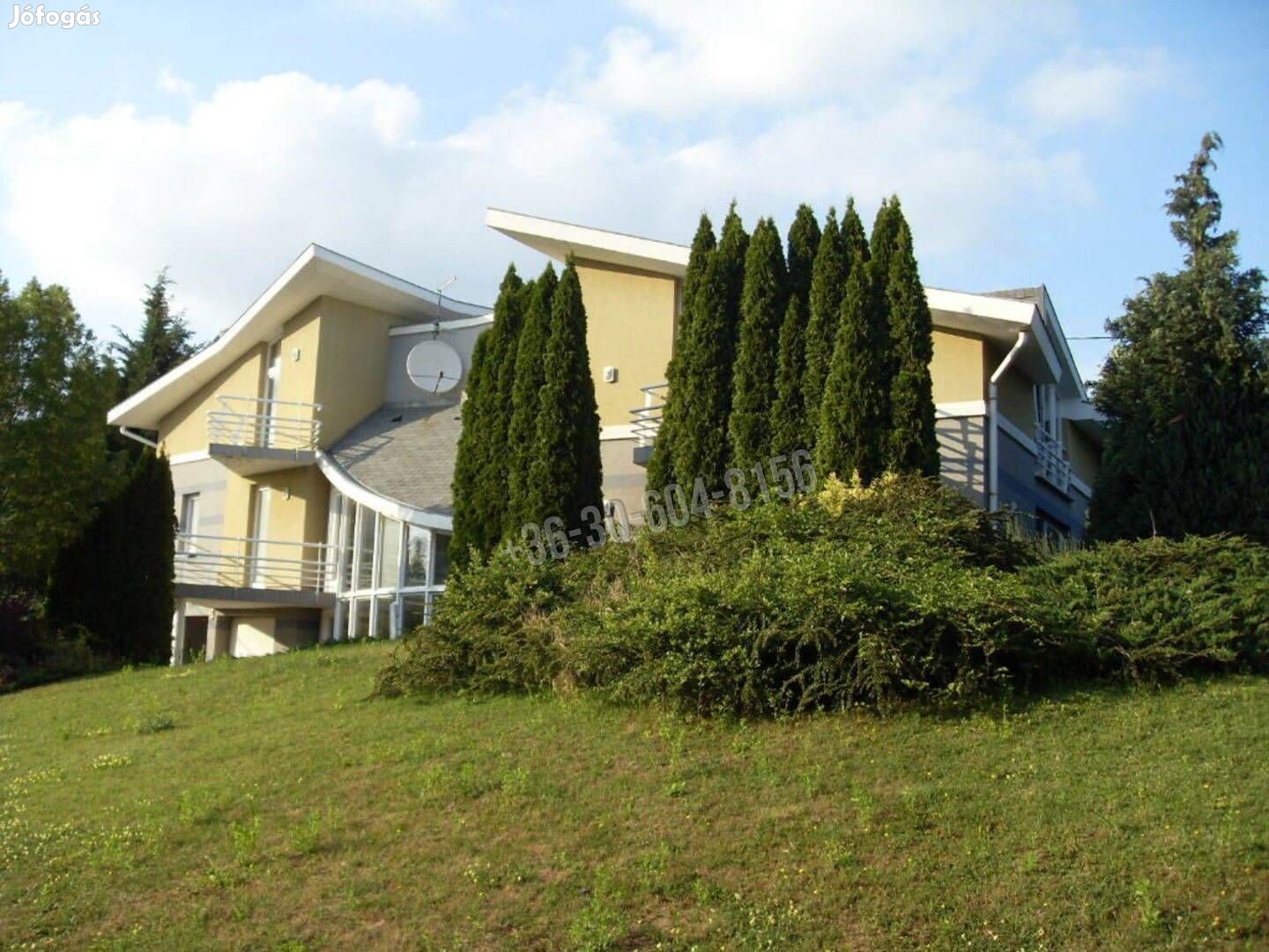 II./A. Hidegkút-Ófaluban csendes környezetben, 2000 m2-es, szépen parkosított, privát telken, D-i tájolású, gyönyörű panorámás, egyedi belső kialakítású, 250 m2 beépített területű, amerikai konyhás nappali + 4 hálószobás, nagy teraszos, kiváló állapotú, kertkapcsolatos családi ház, kb. 5 x 10 m-es, fűthető kültéri medencével, szaunával, dupla garázzsal, hűtő - fűtő légkondicionálással..