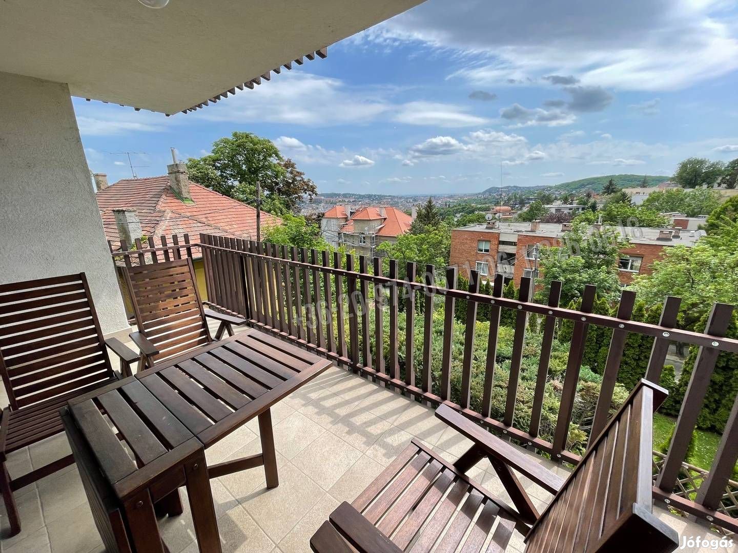 Rózsadombon Bimbó úton minimum 2 évre kiadó 170 nm-es 4 szintes napfényes, csöndes, PANORÁMÁS sorház, frissen felújítva. Bejárati szinten konyha, étkező, terasz és vendégmosdó, alsó szinten tágas nappali dolgozóval és szaunás fürdőszoba található. Első emeleten 2 hálószoba és fürdőszoba, 2. emeleten egy hálószoba és fürdőszoba kapott helyet. Új bútorokkal teljesen berendezett és gépesített, klímás. Teraszokról és szobákból is gyönyörű panorámás kilátással. A lakáshoz tartozik egy önálló garázs, amibe 2 autó is befér. Közös költség: 45,000 Ft/hó. Kisállat nem hozható. Rózsakert bevásárló központ kocsival 2 percre, Száll Kálmán tér 5 perc alatt elérhető. 149-es és 91-es busz megállói 5 perc sétára. 2 havi kaució szükséges. .