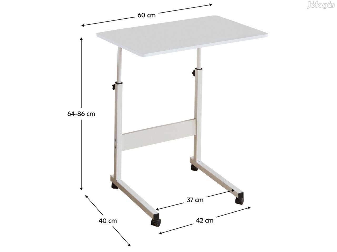Fehér fém lábakkal, görgővel és fa színű lappal ellátott kisasztal - lapra szerelten, bontatlan csomagolásban eladó.