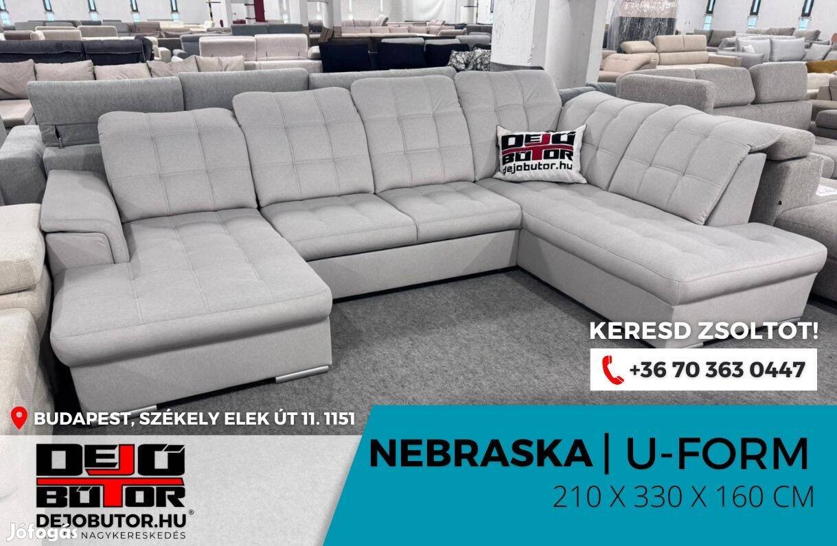 Nebraska Ualak grey sarok kanapé ülőgarnitúra 210x330x160 cm ágyazható fekvő 130x200 cm ágyneműtartós 515.000 Ft tól akciós készlet ár