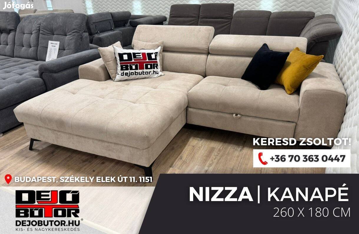 Nizza sarok kanapé bútor ülőgarnitúra 260x180 cm krém ágyazható ágyneműtartós 400.000 Ft
