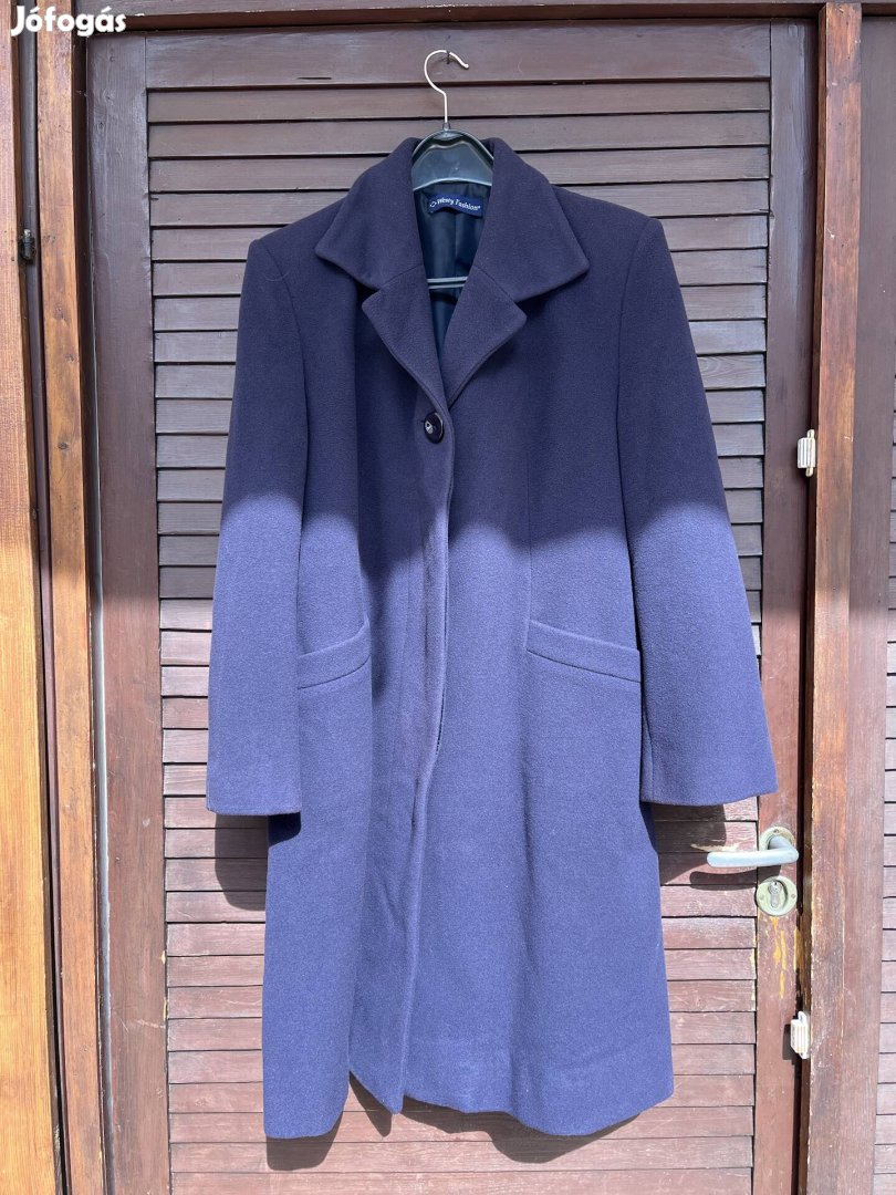 Női sötétkék hosszú gyapjúkabát 42-es méretben
