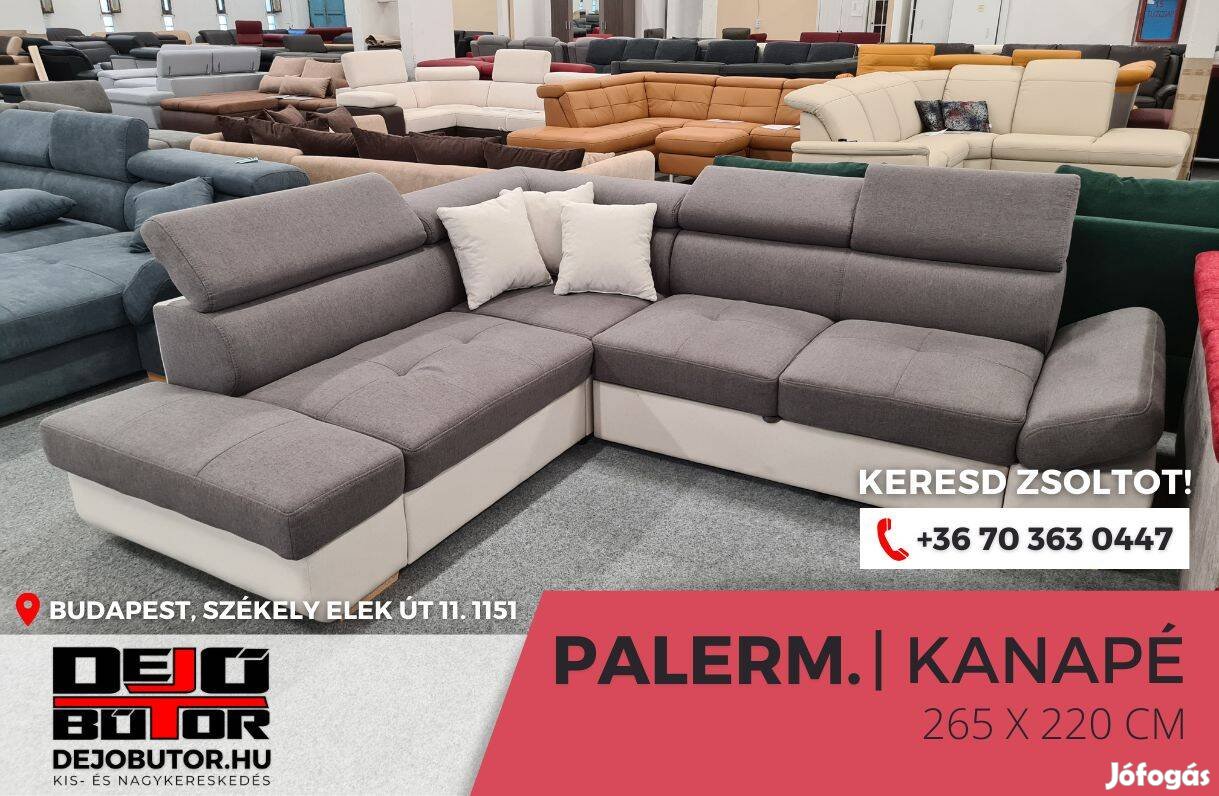Palermo L szürke rugós kanapé ülőgarnitúra sarok 265x220 cm ágyazható á ágyneműtartós 435.000 Ft fekvő 140x200 cm