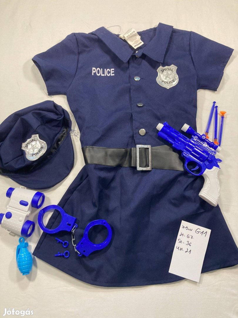 Rendőr jelmez, lány rendőr jelmez 7-9 év G11
