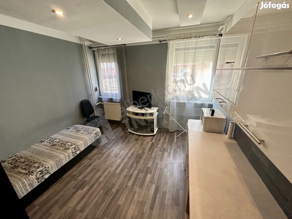Zuglóban a SZIKSZÓ PARKBAN kiadó egy FELÚJÍTOTT 20nm, utcai nézetű VILÁGOS, FÖLDSZINTI GARZON!