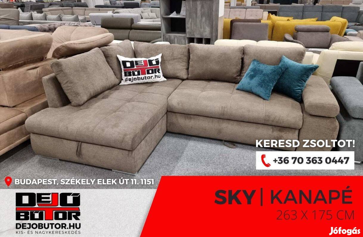 Sky sarok kanapé ülőgarnitúra 263x175 cm rugós ágyazható selyem barna bútor ágyneműtartós 380.000 Ft