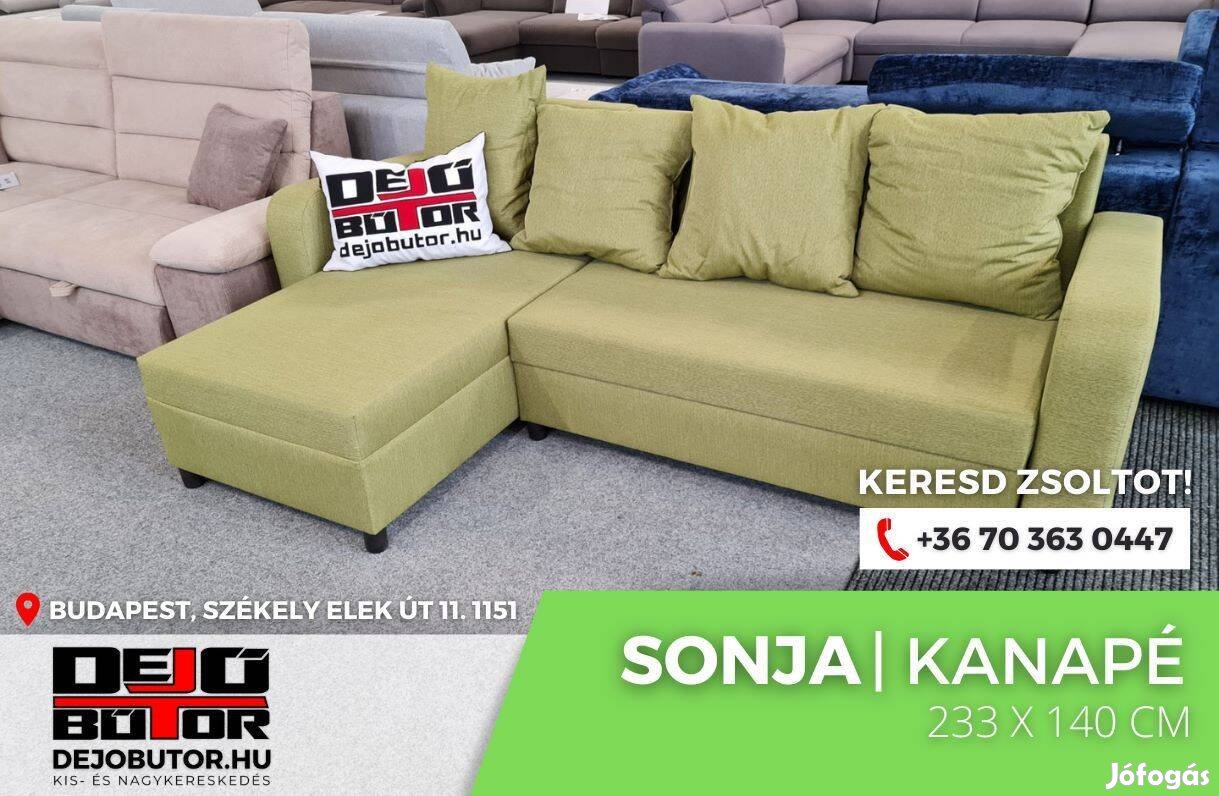 Sonja L zöld kanapé ülőgarnitúra sarok 233x140 cm ágyazható á ágyneműtartós 200.000 Ft fekvő 135x200 cm