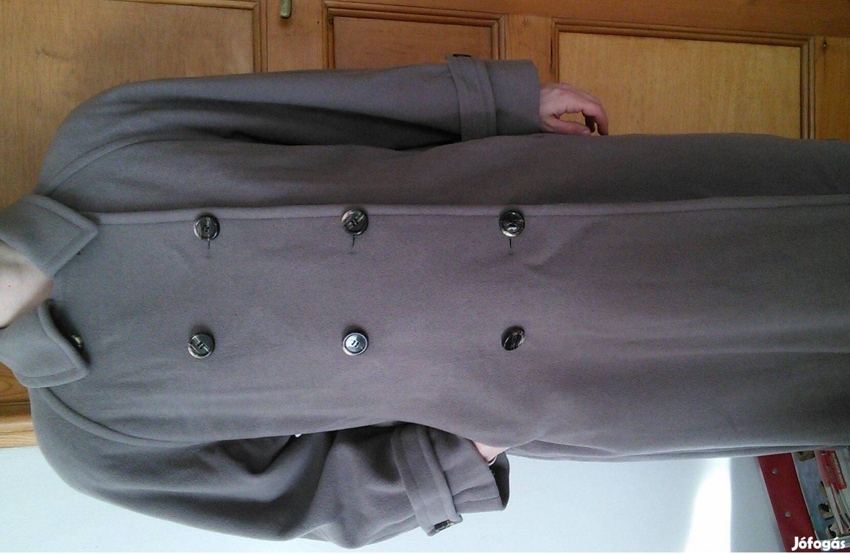 M-es méretű barna színű hosszú női gyapjú télikabát 7900 Ft-ért eladó.