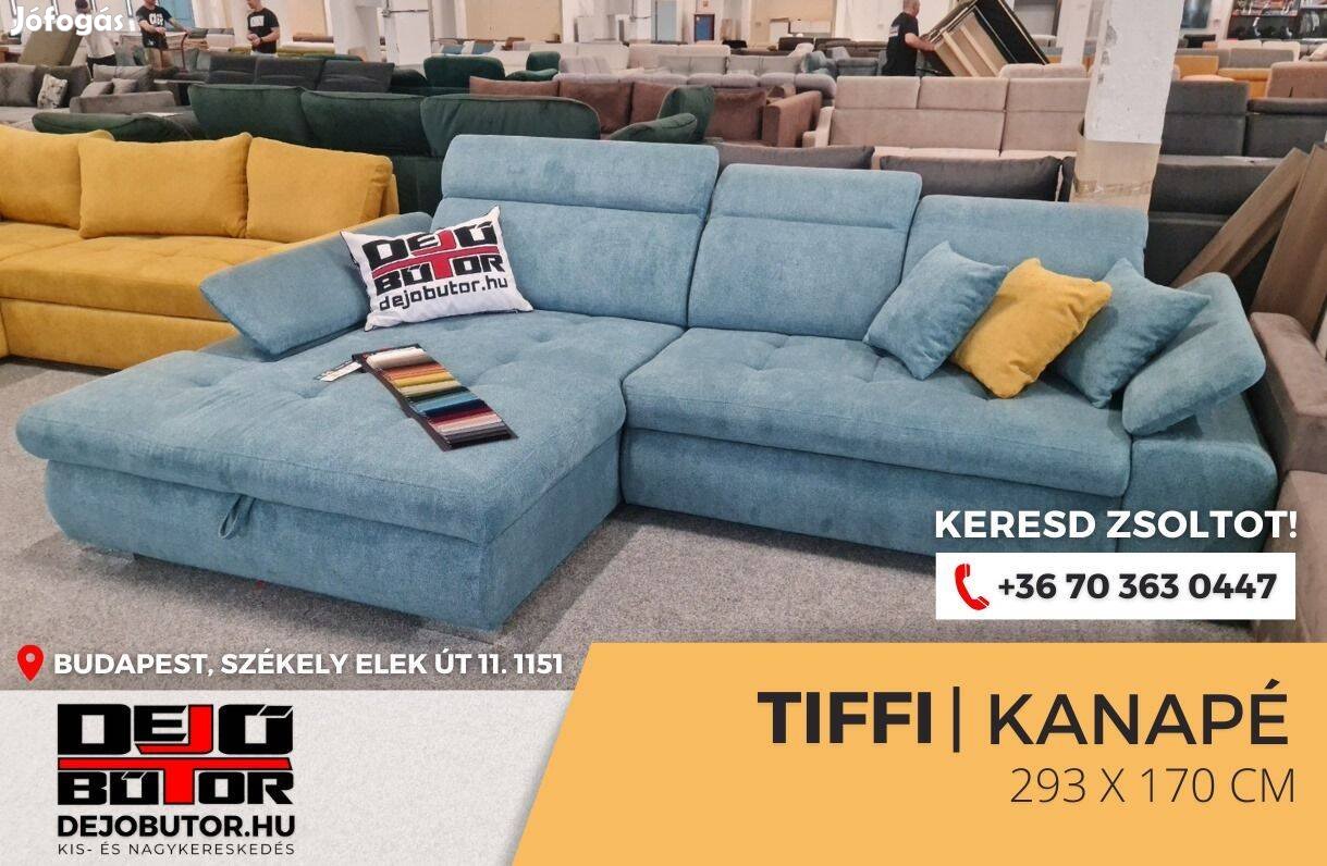 Tiffi kanapé ülőgarnitúra 294x175 cm sarok bútor kék ágyazható ágyneműtartós 455.000 Ft fekvőfelület 140x20 cm