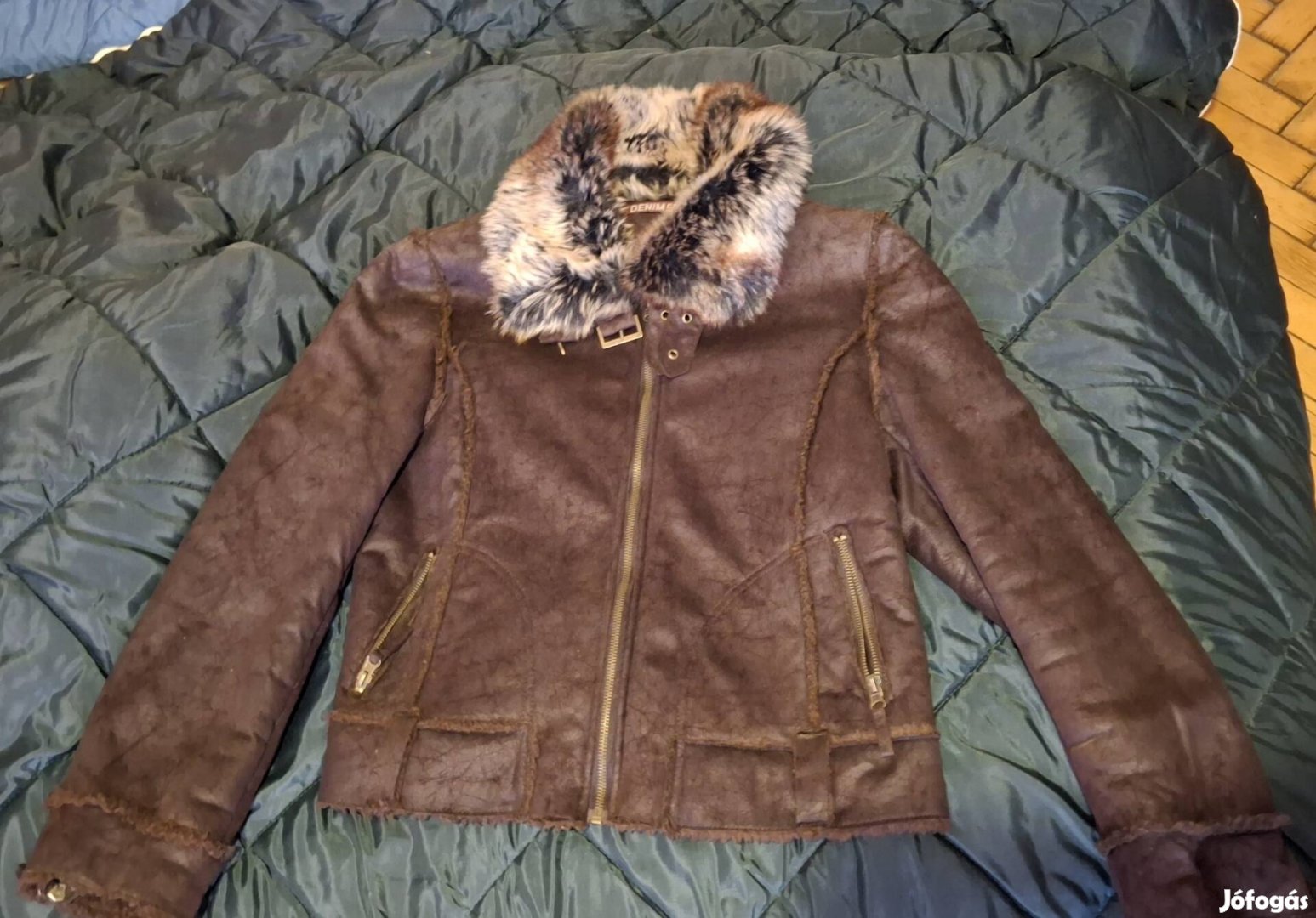 Eladó egy vadonatúj, eredeti, sorszámos, Denim márkájú, sötétbarna színű, női vagy férfi velúr bőrkabát.