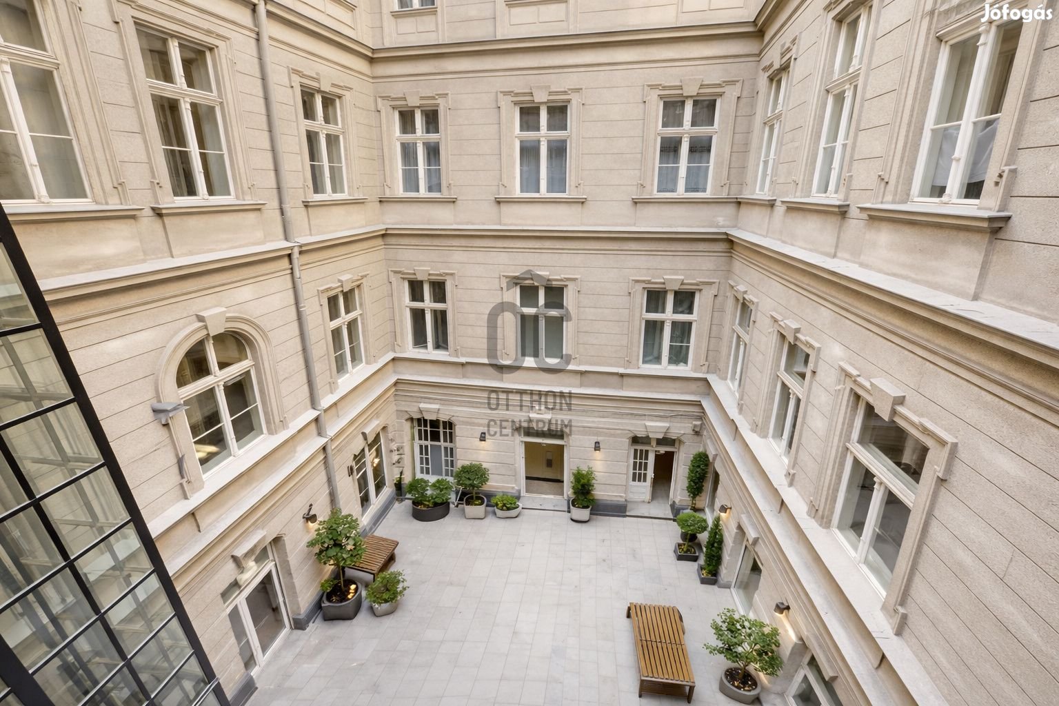 Eladó egy nagy belmagasságú (4 m), igényesen kialakított, amerikai konyhás nappali + 2 hálószobás lakás egy rendezett, klasszikus polgári házban.