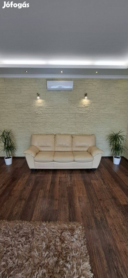 Eladó egy jó állapotú vaj színű bőr kanapé. Kinyitható ágyá alakítható.