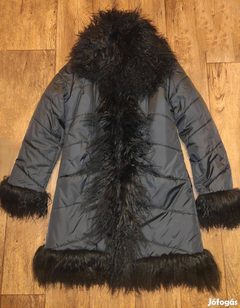 Valódi racka bárány szőrmés fekete bélelt kabát