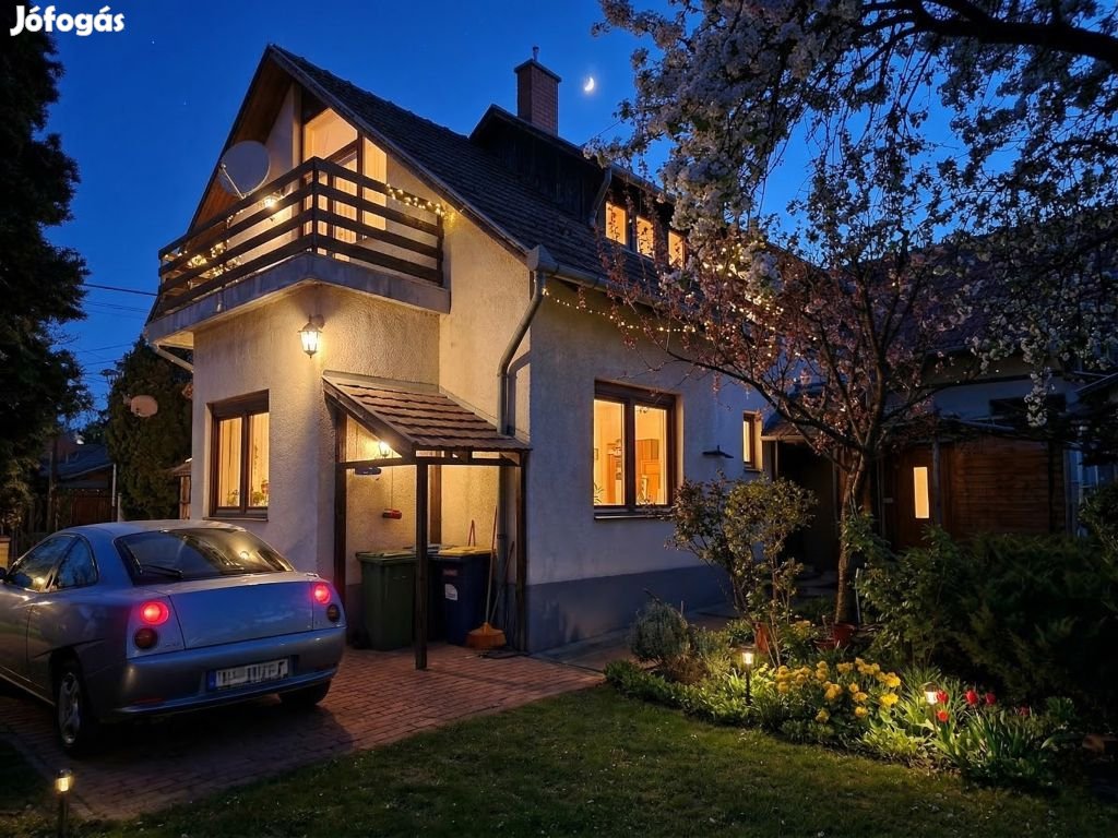 A 556 m-es, összközműves telek igazi oázis a természet szerelmeseinek: ásott kút biztosítja a kert varázsát, és a két erkélyről megcsodálhatók az évszakok festői váltakozásai. A ház 1954-ben épült masszív betonalapokra, majd 1987-ben tetőtér-beépítéses bővítésen esett át.