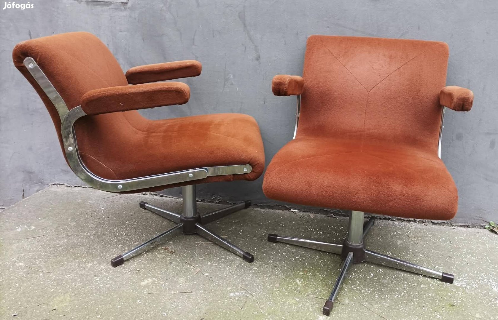 "Helén" retro fém fotel pár,krómozott fémvázas, forgó fotelek