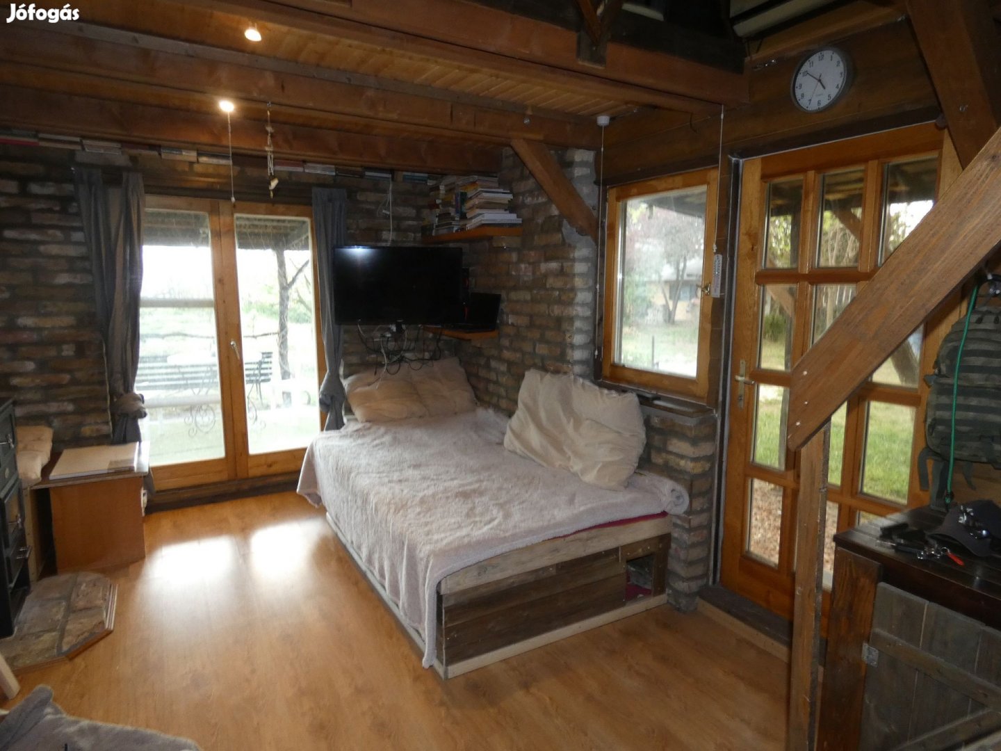 A házat ajánlom a természetes anyagok kedvelőinek, mert bárhova nézünk a fa és a tégla uralja a környezetünket, a házba lépve úgy érezzük magunkat, mintha még mindig a természetben lennénk. Ezt a harmóniát a konyhabútor és a nyílászárók sem törik meg holmi műanyaggal.