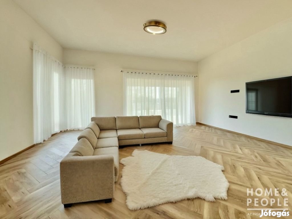 Elosztása: előszoba, konyha étkezővel, nappali, 3 db hálószoba, 2 db fürdőszoba, wc, kamra, gépészet