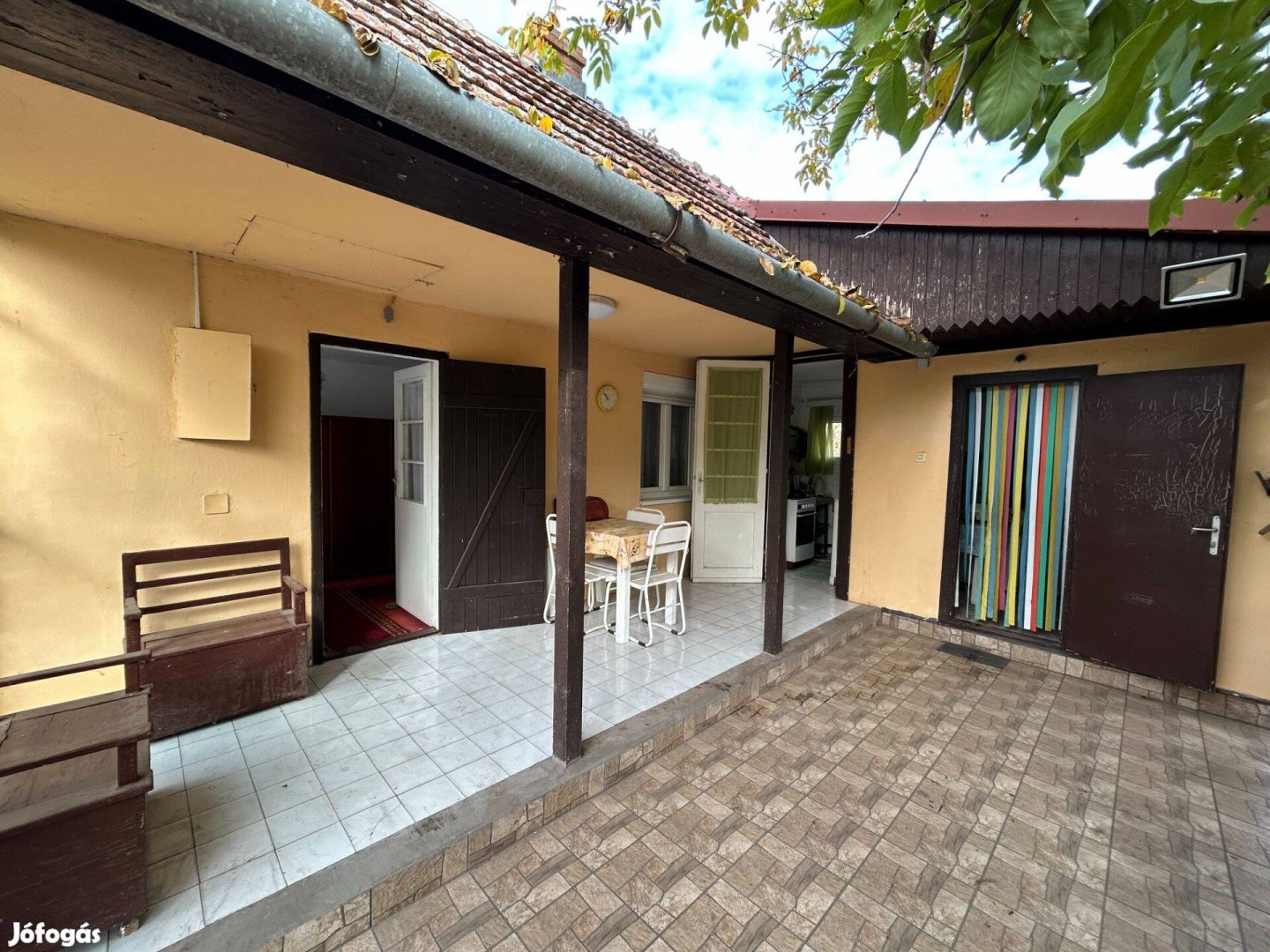 Szeged- Subasán, 838 m2 telken, kb. 24 m2 tégla építésű felépítménnyel - nyeregtető cserép héjazattal - rendelkező ingatlan, a Domaszéki út egyik mellékutcájában, csendes helyen eladó. Az ingatlan jogilag a földhivatali nyilvántartásban " kivett/zártkerti művelés alól kivett terület,gazdasági épület" megnevezésű ingatlan. A telek körbe kerített. Vezetékes víz, elektromos áram( 18 A) és gáz a telken belül, mindhárom mérővel mért. A tégla építésű házikó statikailag és optikailag jó állapotban van, nagyméretű mezei tégla falazattal. Helyiségei: lakószoba, konyha, fürdő-WC, fedett terasz. A fedett terasz szélén beton sávalap található, így a jövőben falazható/beépíthető lehet. A fenti három helyiség külön-külön a teraszról megközelíthető. A lakószobában konvektoros fűtés és öntöttvas kályha van.(a ház kéménye intakt/működőképes, de újbóli használatbavétel előtt ellenőrzést igényel) A ház északi fala kívülről hőszigetelt. Az ablakok modern műanyag ablakok, redőnnyel. A szennyvíz emésztőbe távozik. A telken fúrt kút üzemel, elektromos szivattyúval. A használati meleg vizet villanybojler biztosítja. A telken egy kb. 4 m2 kerti fa tároló van, mellette kerti illemhely. Mindkettő csak kívülről igényel új lakkozást. Kerti gépek és szerszámok tárolására egy kb. 5.5 m2 beton alapon elhelyezett zárható lemez tároló biztosít helyet. A kert és az ingatlan folyamatosan rendben tartott. Termő gyümölcsfák, szőlő, veteményes, stb. Nagyon rendezett a környék is. A szomszédok barátságos emberek. Parkolás a telken illetve az utcában is biztosított. Az eladó ingatlan tehermentes. Várom megtisztelő jelentkezésüket!