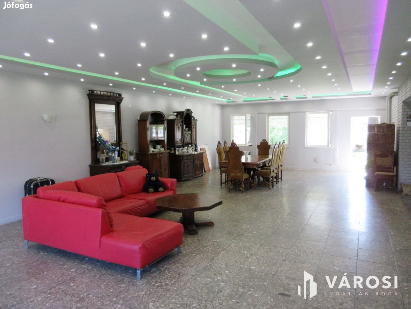Szegeden kínálom eladásra ezt az éttermet. A földszinten 175 négyzetméteren a vendéglátáshoz szükséges infrastruktúra, az emeleten egy hatalmas 150 négyzetméteres lakó rész, valamint van még egy boros pince is, mely szintén tekintélyes, 90 négyzetméteres. 1984-ben épült, 2021-ben felújították, nyílászárókat cseréltek, tavaly pedig a villamos hálózatot, állapota kiváló. Jó az elhelyezkedése: könnyen megközelíthető, sok autó tud előtte parkolni.