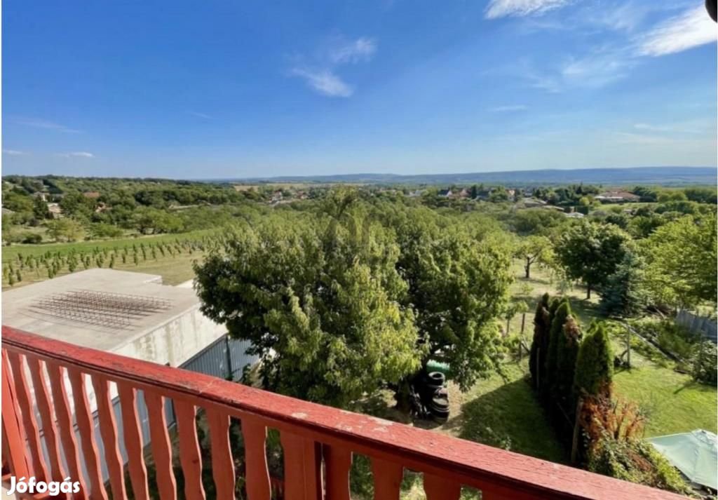 Csókakőn, csendes, természetközeli környezetben eladó egy örök panorámás, 1998-ban épült, kétszintes, 3 szobás, téglaépítésű családi ház, melynek hasznos lakótere 76,1 m, a teljes alapterület pedig a pinceszinttel együtt 124 m.