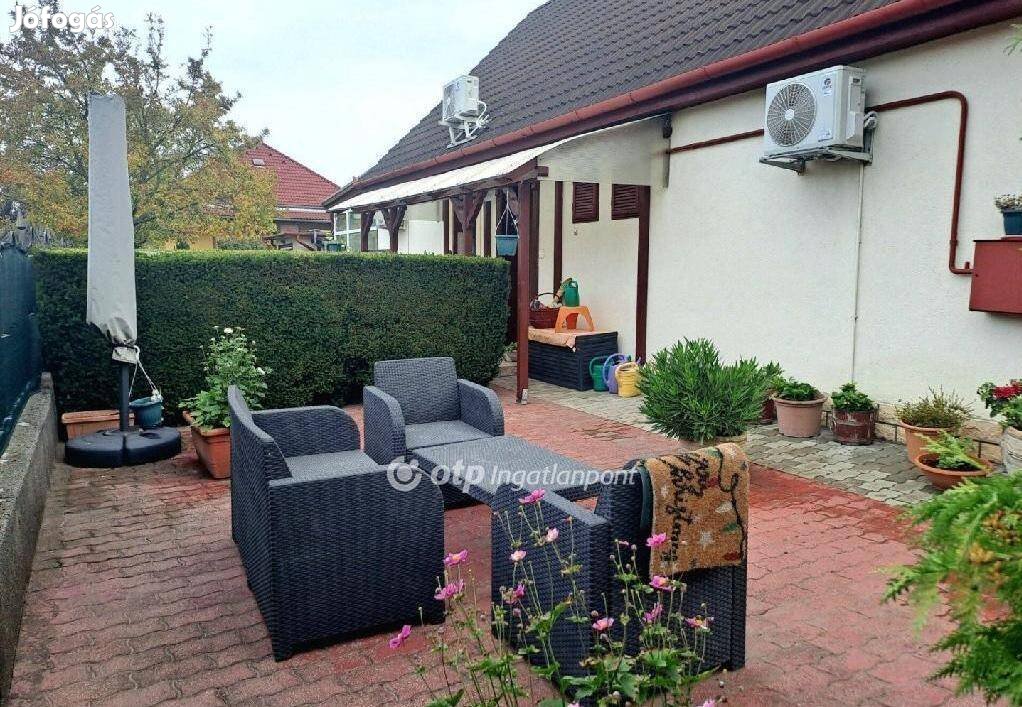 Fejér vármegye Dunaújváros kertvárosi hangulatú elit környezetében eladó egy 1984- ben épült, impozáns, napelemekkel felszerelt, 140 nm területű luxus kategóriába tartozó kétszintes, 2 szobás,2 fürdőszobás, gáz cirkófűtéses légkondicionálókkal felszerelt, nagy nappalis, télikertes családi ház, körbe kerített, gyönyörűen parkosított, és részben térkövezett, 353 nm területű saroktelken. A tágas világos szobák és a nappali parketta burkolatúak, a többi helyiség igényes járólap burkolatú. Az alsó szinten található egy nagy nappali komfortos télikerttel, tágas előszoba, melyből nyílik egy külön álló WC és egy tusolóval ellátott nagy fürdőszoba, valamint az étkezővel egybekötött konyha. Az emeleti szinten található két külön bejáratú nagyobb méretű szoba, egy pezsgőfürdős káddal ellátott fürdőszoba, külön bejáratú WC, valamint egy kisebb gardrób szoba. Az ablakok rovarhálóval, redőnyökkel felszereltek. A 8 cm vastagságú homlokzati szigeteléssel ellátott ház fűtésről Bosch gáz kombi falikazán alapú központi fűtés, és egy elektromos kandalló gondoskodik. A használati meleg vizet is a kazán biztosítja. A házban az optimális, kellemes hőérzetet télen, nyáron 3 db fűtő-hűtő légkondicionáló is garantálja. Igény szerint a bútorzat jelentős része is a vételár részét képezi felár nélkül. Az ingatlan sarok telken helyezkedik el, melynek egy része egy szépen parkosított, belső udvar, Itt kapott helyet egy autó tárolására alkalmas garázs, melyhez kapcsolódik egy külső tároló. A kert elszeparált részén található egy 8 fő befogadására alkalmas egyedi kivitelezésű, uszoda technikával ellátott fedett Jakuzzi medence, amely éjszakai áramra és napkollektorra lett rákötve. Az ingatlan az elhelyezkedéséből adódóan is remek választás, mivel nagyáruházak közelségében található, és az autóbusz megálló is 50 méternyire van. Amennyiben egy igazán különleges környezetben szeretne otthonra lelni családjával egy luxus ingatlanban, vagy ilyen ingatlant keres ügyvédi irodának, könyvelő irodának, orvosi, vagy fogorvosi rendelőnek, akkor ez az ékszerdoboz a legjobb választása lehet. A vásárlást igény szerint ingyenes finanszírozási tanácsadással tudjuk segíteni.