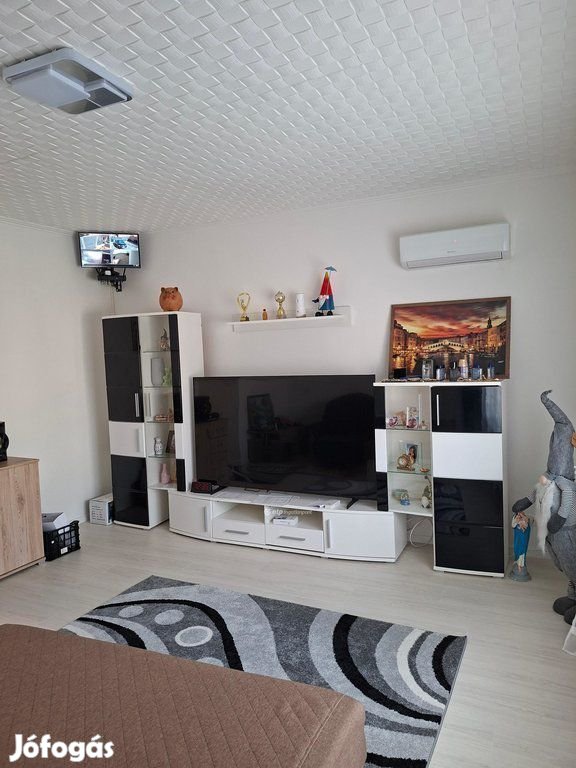 Az ingatlan 2026 elején teljes körű, prémium szintű felújításon esett át, amely a műszaki és esztétikai elemekre egyaránt kiterjedt. A korszerűsítés során külső homlokzatszigetelés készült, megtörtént a teljes nyílászárócsere, új, minőségi burkolatok kerültek minden helyiségbe, valamint a teljes belső festés is megvalósult. A fűtésről korszerű Vaillant cirkó gondoskodik, míg a kellemes hőmérsékletet két darab, egyenként 3,6 kW teljesítményű klíma biztosítja, kedvező H tarifás elszámolással. A modern műszaki megoldásoknak köszönhetően az otthon fenntartása gazdaságosabb, komfortja pedig a mai igényekhez igazodik.