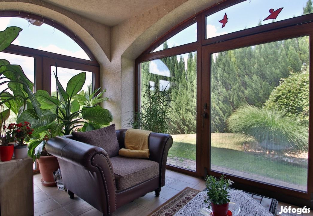 Székesfehérváron önálló családi ház eladó. Eladásra kínálok egy 379 nm-es, 2 szintes, 2011-ben épült családi házat, 1070 nm-es önálló parkosított telken. Az ingatlan minőségi, egyedi anyagokból készült. A ház tetőszerkezete 2012-ben elnyerte az év tetőszerkezetét. 4 hálószobából, 4 fürdőszobából és egy nappali, téli kert helyiség alkotják a lakószintet. A pincében található wellnes részleg (szaunával, zuhanyzóval, társalkodóval), borospincével, duplagarázzsal. Az ingatlant az évek során korszerűsítették 12 cm-es grafitos nikecel külső szigetelést kapott, 3 x 50 A van a házban, fűtésrendszere weishaupt, mely biztosítja az alacsony fűtés számlát (22.000 Ft/hó). A beltéri ajtók valamint a konyhaszekrény tölgyfából készültek, egyedi, festett iparművészeti üveggel díszítve. Melegvíz ellátása napkollektorral rásegítve (800 l-es tartállyal). A telken automata locsolórendszer található.