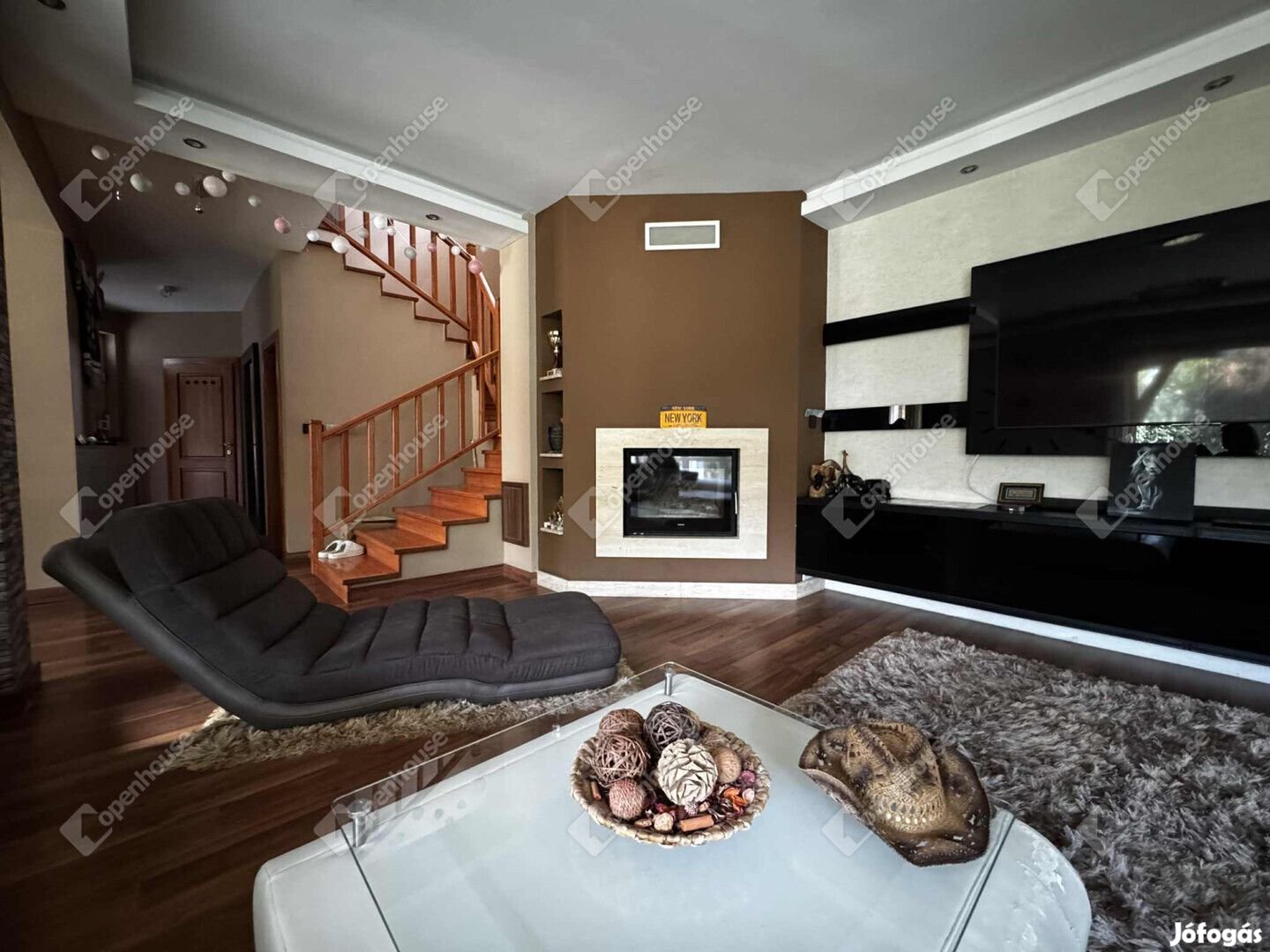 - Kandalló kapott helyet a nappaliban.