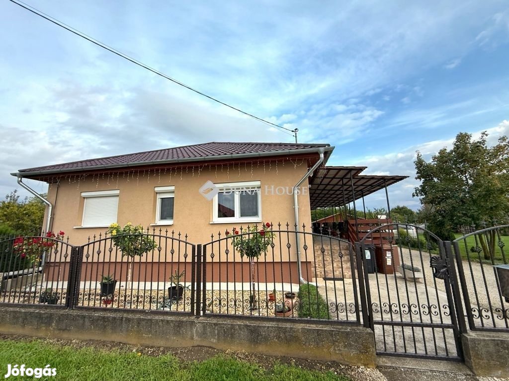 Hantoson teljesen felújított, kétgenerációs lehetőséget is kínáló családi ház eladó.Hantos központi részén eladó egy 90%-ban tégla építésű, igényesen felújított családi ház, amely azonnal költözhető állapotban várja új tulajdonosát. Az ingatlan különlegessége, hogy kialakításának és melléképületeinek köszönhetően akár két generáció együttélésére is alkalmas.A házban többféle fűtési lehetőség is biztosított: vegyes tüzelésű kazán, gázbojler, valamint a fürdőszobában található hőtárolós kazán gondoskodik a meleg vízről és a komfortérzetről. A konyha-nappaliban padlófűtés gondoskodik a kellemes hőérzetről, melyet radiátorok és hűtő-fűtő klíma egészít ki. A ház minden szobájában radiátor található, így minden helyiségben biztosított a komfort. A különálló épületben további fűtési megoldások is rendelkezésre állnak: kandalló, radiátor és klíma egyaránt. A szülői hálóhoz saját gardrób tartozik, amelyből közvetlen kijárat nyílik a hangulatos, közel 60 m-es fedett teraszra. A fürdőszoba modern kialakítású, kád és épített zuhanyzó is helyet kapott benne.Az ingatlan minden részletében a praktikum és a kényelem érvényesül. Távirányítós elektromos kapun keresztül közelíthető meg az udvar, ahol fedett autóbeálló, rendezett kert, fúrt kút, valamint pince is megtalálható. A melléképület külön bejárattal rendelkezik, így önálló lakrésznek is kiválóan alkalmas.A ház masszív tetőszerkezettel rendelkezik, melyet cserepeslemez fedés borít. A melléképületek és a fedett terasz szintén lemeztetőt kaptak. A tetőszerkezet filccel és párazáró fóliával lett kiegészítve, ami hosszú távon biztosítja a megfelelő szigetelést és védelmet. Az elektromos hálózat 3x16 amperes, modern elosztóval felszerelve.Ez a családi ház ritkaság a mai piacon: tágas terek, gondosan karbantartott állapot, többféle fűtési rendszer, és melléképületei révén egyaránt ideális választás családoknak vagy akár két generáció együttélésére.