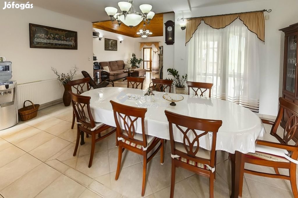 Luxus ingatlan, igényes vevők részéreKedves Érdeklődő!Egy varázslatos ingatlan bejárására hívom, mely során a képeket egymás után megtekintve helyiségről-helyiségre járhatja be a házat, anélkül, hogy kimozdulna jelenlegi tartózkodási helyéről.Az igazi élményt az ingatlan séta adja, melynek használatával valósághű információkat kap az ingatlan mindkét szintjéről, ne hagyja ki! Ennél az ingatlannál szebbet már álmodni is nehéz!A családi ház Fejér Vármegye nyugati részén Polgárdiban található, kiváló infrastruktúrával. Polgárdi, Székesfehérvár és Siófok között helyezkedik el. Földrajzi fekvésének köszönhetően az itt élők könnyen találnak munka - és szórakozási, kikapcsolódási lehetőséget is. A városon keresztül haladó, a Balatont megkerülő kerékpárút népszerű turista célpont. A helybeliek eldönthetik, hogy 20 percen belül a Vármegye székhelyen lévő Plaza-ban, vagy a Siófoki szabadstrandon szeretnék a szabadidejüket eltölteni .Az ingatlan közelében buszmegálló, élelmiszerüzlet és játszótér is van. A városközpont percek alatt elérhető.Az ingatlan magas földszintjén négy szoba, két fürdőszoba WC-vel, konyha, étkező, nappali, télikert és terasz került kialakításra. Az alsó szinten három jármű tárolására alkalmas garázst, műhelyt, gardrób szobát, fürdőt WC-vel, tárolót és BAR helyiséget építettek.Autós nyelven szólva következzenek az extrák:- 12,3 kW teljesítményű napelemrendszer, mely az áram felhasználás többszörösét termeli vissza a hálózatba,- 3 x 32 A ipari áram réz vezetékekkel, álmennyezet feletti kábel csatornákban,- elektromos bejárati kapu és garázs ajtó, fűthető jármű lejáróval, - 2 db hűtő, fűtő 5,3kW teljesítményű klíma berendezés,- ásott kút, automata öntöző rendszer, - a cserépkályha légkeveréssel került kivitelezésre,- cseresznye fa konyhabútor és nyílászárók,- szauna és jakuzzi előkészítéssel,- 30 négyzetméteres terasz kihúzható árnyékolóval, - 80 négyzetméter külső sütögető hely kemencével, melyből 20 négyzetméter zárt terület,- 20 négyzetméteres szerszám tároló,- szőlőlugas, díszfák, stb.stb.Remélem, hogy sikerült felkeltenem az érdeklődését. Bízom benne, hogy személyesen is megmutathatom ezt a nem mindennapi ingatlant, és rövid időn belül Ön is a Duna House Kft. elégedett partnere lesz. Köszönöm, hogy elolvasta. További információkért vegye fel velem a kapcsolatot!