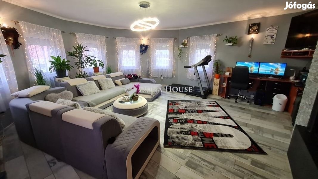 Rácalmáson igazi luxus 200 m2-en!!!Gyönyörű, 3 szoba + nappalis, 130 m2-es, napelemekkel és napkollektorokkal felszerelt családi ház hatalmas fedett terasszal, grillezővel, kerti dísztóval és külön fürdőtóval, Finn szaunával, jakuzzival ELADÓ!!!! Okos otthon, telefonról vezérelhető minden!A ház teljes berendezésével megvásárolható! A konyha Electrolux háztartási gépekkel felszerelt! ( indukciós főzőlap, mikrohullámú sütő, elektromos sütő, páraelszívó, Side-by-side hűtőszekrény)A nappali kristálycsillártól úszik fényárban! Az ablakokon alumínium redőnyök fokozzák a biztonságot! Egyedileg gyártott faajtók kerültek beépítésre mindenhol.Az otthon melegét kondenzációs gázkazán biztosítja, padlófűtéses hőleadás formájában. 3 hűtő-fűtő klíma is fokozza a luxus érzését!A modern kor igényeihez igazodva, Japán 15kw-os napelemrendszer került fel, prémium minőségű inverterrel. A meleg víz ellátásról 2 db napkollektor gondoskodik.A fedett terasz dísze az egyedileg készített lőcsös szekérkerék lámpa! Az udvaron szökőkút kiépítéséhez is adottak a feltételek!Az ott lakók kikapcsolódásához adott minden! 5 személyes Wellis jakuzzi, 12 személyes Finn szauna. ( Itt hangulatvilágítás, csillagos égbolt világítás, hő és vízálló hajórádió, körpanorámás kilátás fokozza a kényelmet)A 20 m3-es kerti tóban Koi pontyok úszkálnak. A fürdőtó napozóterasszal, tavirózsával díszített és mindezeket a Horvát tengerpartról hozott kövek és a 6 szökőkút teszik teljesen egyedülállóvá.A biztonság is egyedülálló! Kőkerítés körben a ház körül, kamerarendszer, infrakapus kisállatbarát riasztórendszer, elektromos nagy és kiskapu. Várom hívását! Nézzük meg együtt !