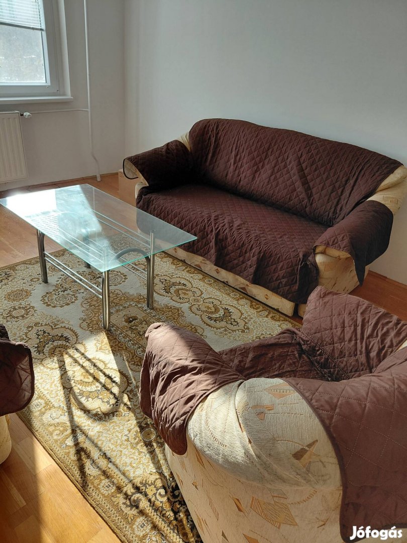 Költözés miatt eladóvá vált egy háromrészes ülőgarnitúra (bútorvédővel) és egy dohányzóasztal. A 2 személyes kanapé ágyneműtartós. A bútor kisállat-és dohányfüstmentes lakásban van, Dunaújvárosban.