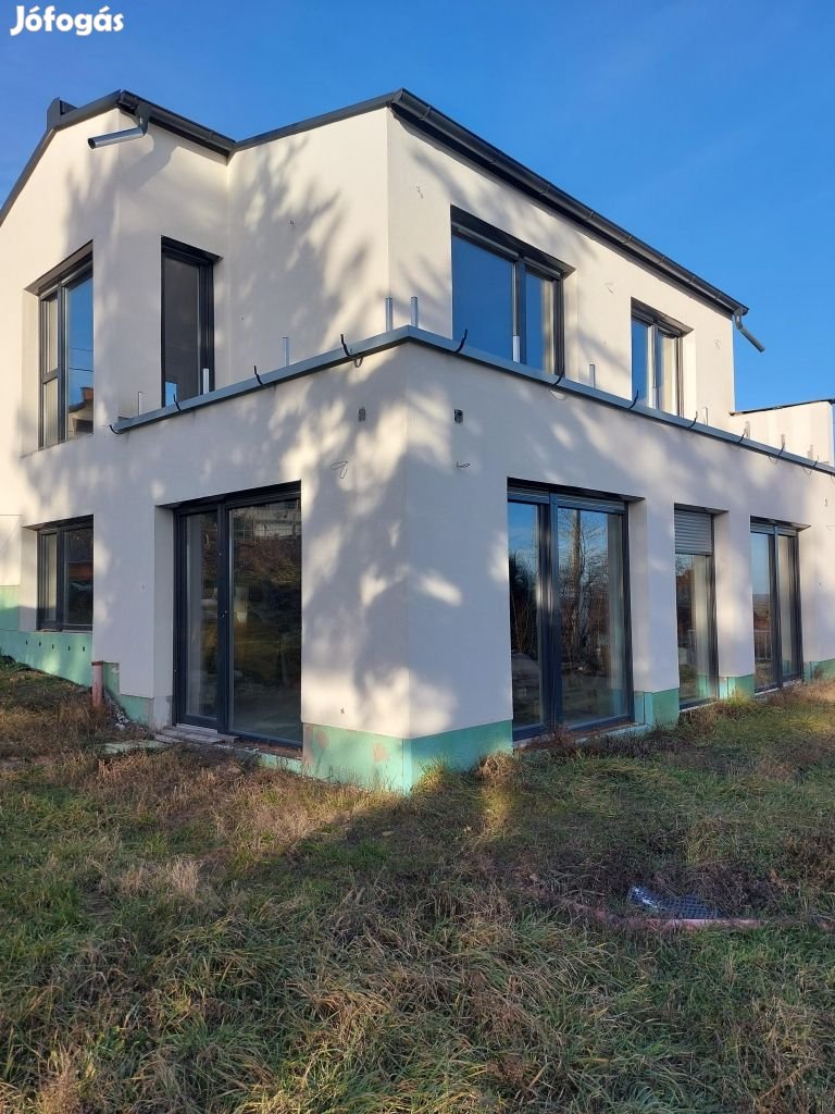 Műszaki leírása: az épület beton sávalapra épült, Porotherm klima 30 as téglából (plusz külső 5 cm-es hőszigetelés). Belső válaszfalak gipszkartonnal kerültek beépítésre (a lépcsők mentén 10 cm-es kerámia válaszfalak épültek be), a vizes helyiségekben impregnált falazat található. Tetőszerkezete fa gerendás, hőszigetelt. Nyílászárói 3 rétegű üvegezésűek, automata redőnyökkel ellátva. Gépészeti helyiségben kapott helyet a hőszivattyú, ez látja el a ház hűtését fűtését, illetve innen van biztosítva a meleg víz is. A helyiségek szaniterei, burkolatai még választhatóak, a vételárba kalkulált összeghatárig.