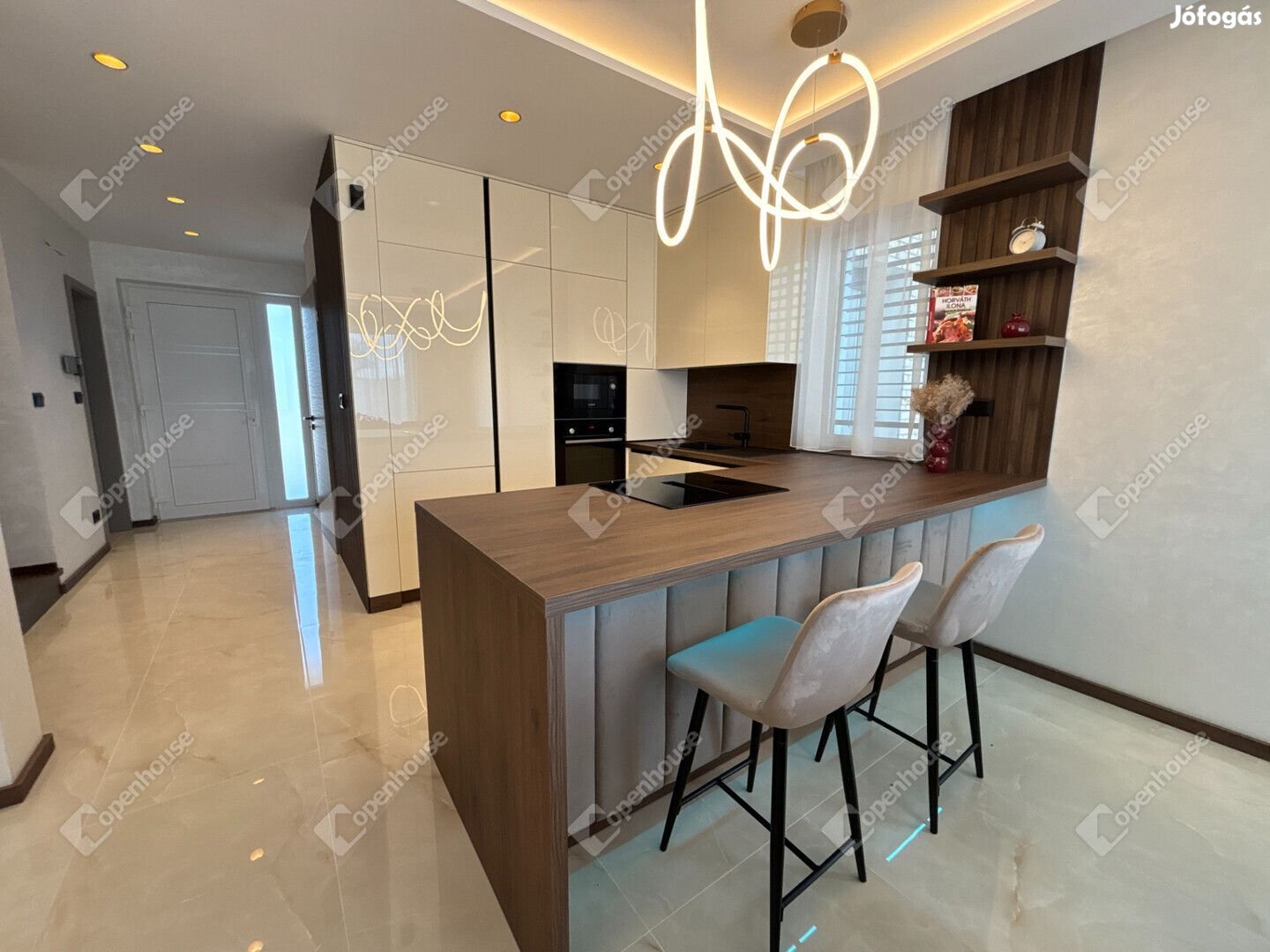 Az ingatlan egyik legnagyobb értéke a teljesen berendezett, egyedileg tervezett belső tér, amely a vételár részét képezi. A modern, letisztult design, a beépített bútorok, valamint a gondosan megválasztott anyagok egységes, prémium megjelenést biztosítanak.