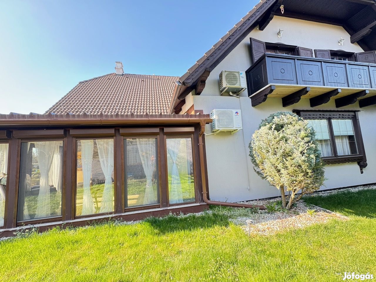 A családi házat egy kiváló építészmérnök tervezte, saját magának. Az ingatlan statikailag, műszakilag hibátlan állapotban van. A külső teherhordó falazat 38 cm-es, 10 cm-es Austrotherm hőszigeteléssel és hőszigetelt vakolattal ellátott. A nyílászárók jó minőségű faablakok, melyeket 2019-ben teljesen felújítottak. A nappaliban és a télikertben elektromos, a többi helyiségben manuális redőnnyel, szúnyoghálóval szerelve. A ház fűtéséről és meleg víz ellátásáról új, kondenzációs gázkazán gondoskodik, a hőleadó radiátorok. A lakásban 4 hűtő-fűtő klíma található, illetve a nappaliban egy fatüzelésű kandalló. A falak exkluzív tapétákkal burkoltak és egyedileg festettek. A szobákban, nappalikban igényes laminált parketta, a többi helyiségben kerámia burkolat található. Az udvarra egy szintén felújított elektromos úszókapun juthatunk be. A kocsifeljáró térkővel burkolt. A duplagarázs elektromos kapuval szerelt, mely új motorral rendelkezik.