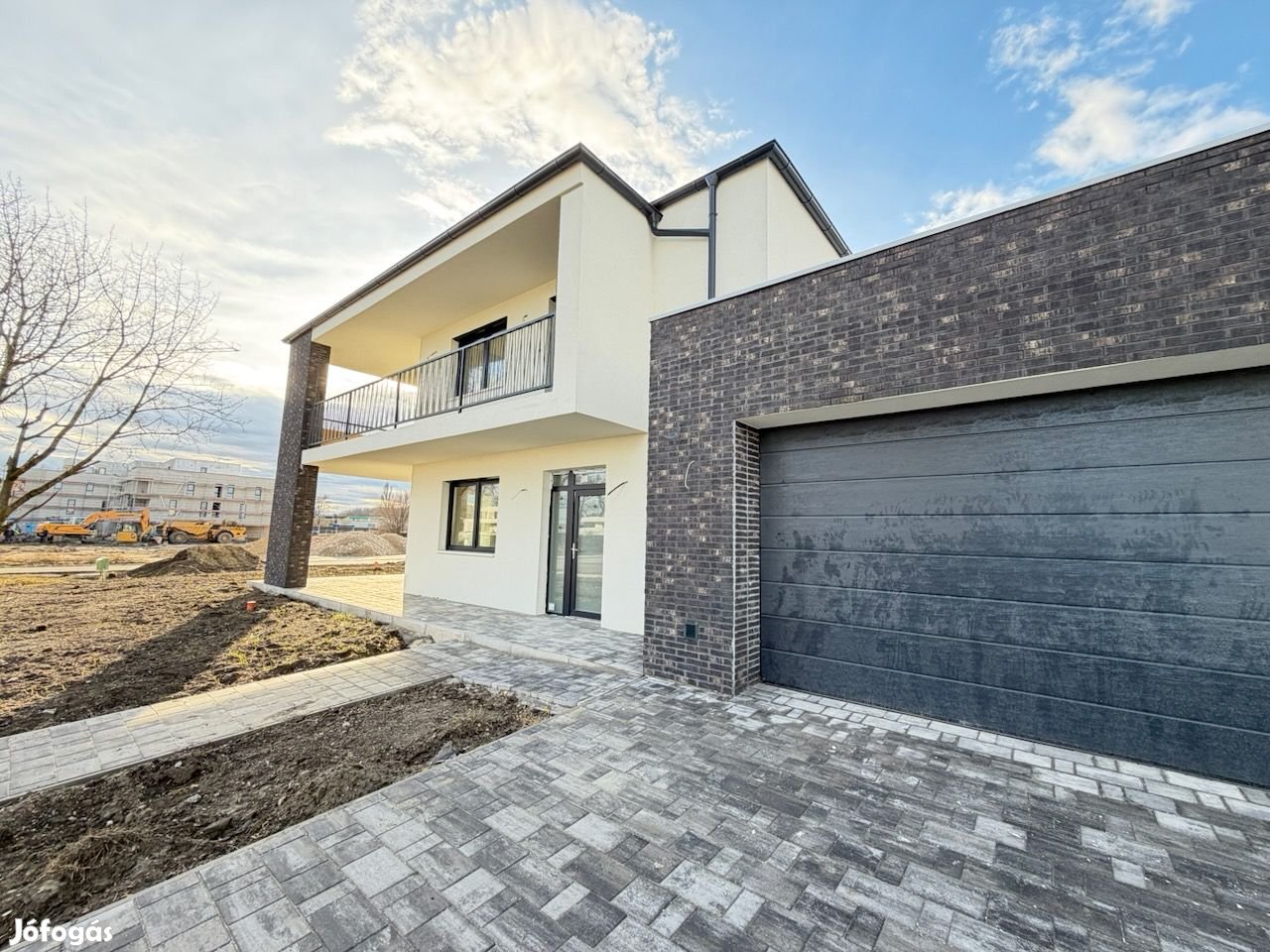 A 35,7 m2-es duplagarázs fűtött, szekcionált automata kapuval rendelkezik. A gépkocsifeljáró térkövezett. Hamarosan elkészül a tereprendezés, mely után a kivitelező elkészíti a kerítést is. Az ingatlan akár azonnal birtokbavehető, a fűtéskész állapot elkészült. A ház "A" energetikai tanúsítvánnyal rendelkezik.