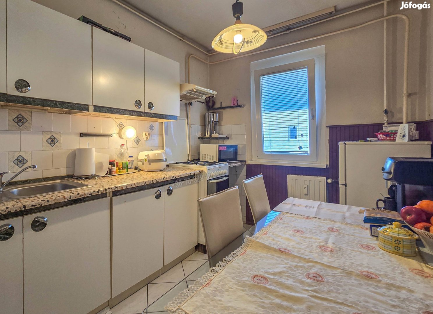 Kényelmes, tágasabb konyha, nappali + 2 fél szobás kialakítás, kényelmes fürdő, valamint egy nagyobb, zöldre néző erkély jellemzi.