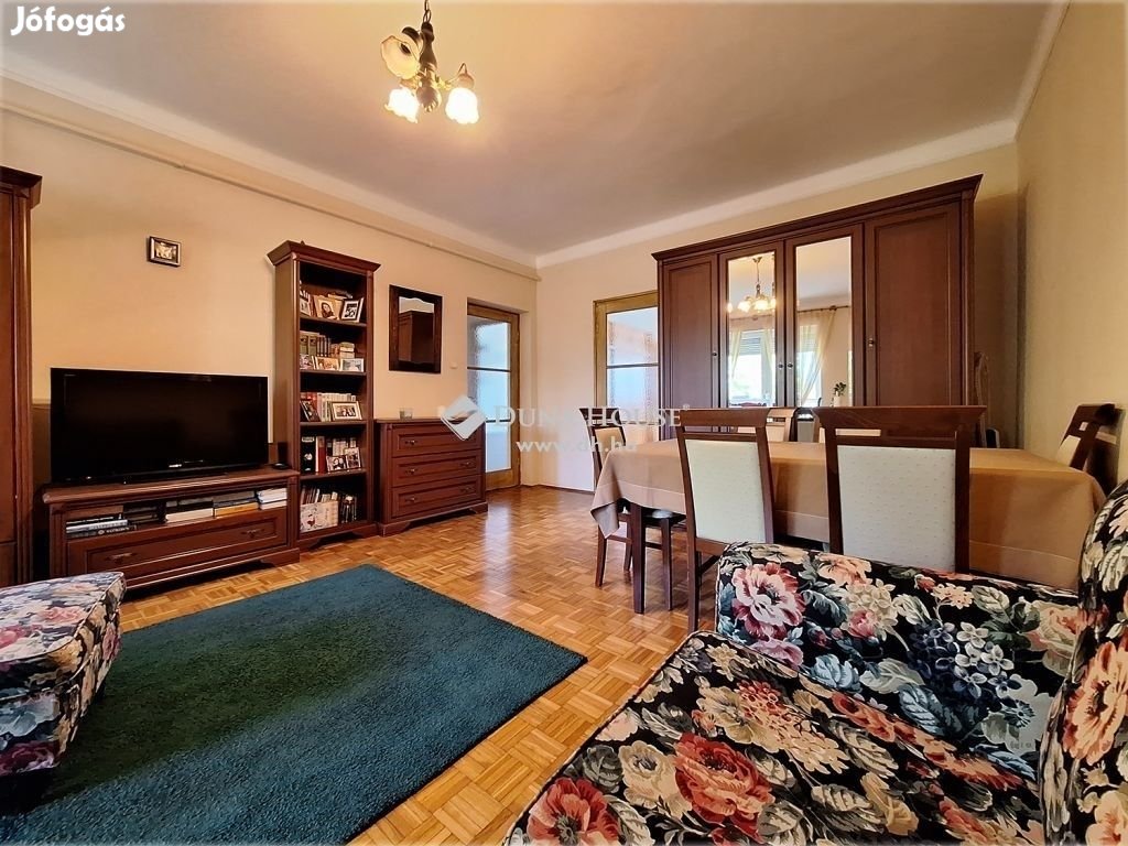Az előszobába beérve kényelmes ülő és tárolófelület fogadja a hazaérkezőket, egy nyitott téren keresztül a konyhába invitálva. A konyhában elektromos főzőlap és sütő, valamint mosogató került beépítésre, továbbá itt kapott helyet a mosógép is. Méretéből kifolyólag a mindennapi étkezéshez is teret biztosít, a pakoláshoz számtalan szekrény áll rendelkezésre. A folyosón külön kamra rejti a hétköznapok finomságait. A fürdő a WC-vel egy térben, ám némileg elszeparáltan található, a hatalmas ablak világosságot, szellőztetést biztosít. A szobák nagy méretűek, jelenleg egymásból nyílnak, de apró leválasztással önállóan is megközelíthetőek. Mindkét lakóhelyiségben eredeti, kiváló minőségű fa parketta található, a többi helyiség kerámia burkolatos. A nagyobbik szoba a családi étkezésekhez is kiváló helyet biztosít, az esti kávézáshoz a 4,8 m2-es fedett loggia nyújt kellemes teret.