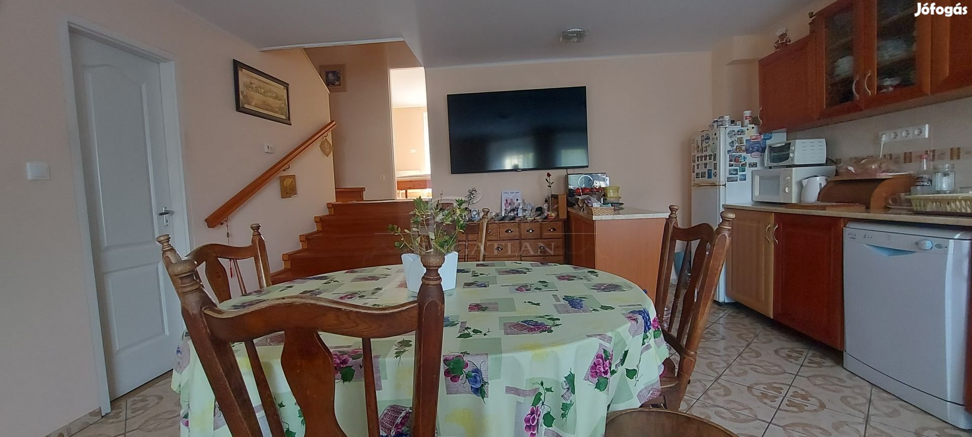 Eladó egy tágas, világos, remek elrendezésű 1978-ban épült jó állapotú lakóterű br. 125 m2-es nappali és 3 hálós, nagy konyha-étkezős, eltolt szintes iker családi ház, 300 m2 telekhasználattal, utcai bejárattal rendelkező 14,5 m-es üzlethelyiséggel, garázzsal, fedett kiülővel....