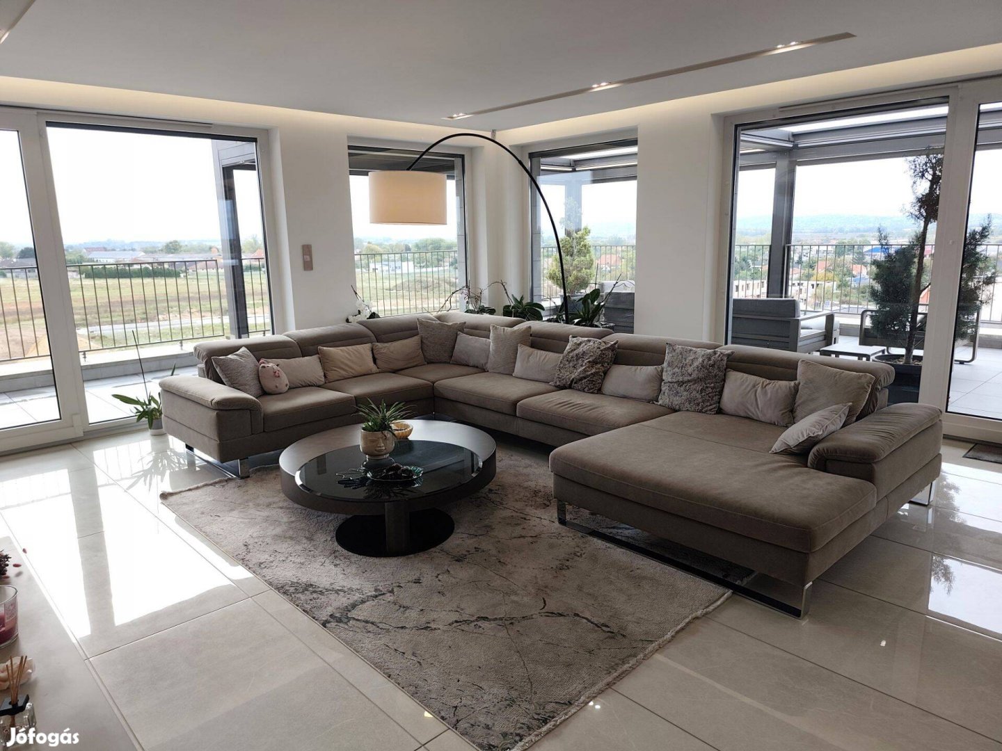 Megvásárlásra kínálunk egy Exclusive, minden igényt kielégítő Penthouse lakást a város Legmagasabb pontján épült társasház Legfelső emeletén. A lakásban a nappali-konyha-étkező egységen felül, 3 hálószoba, hobbiszoba, szivarszoba, 2 fürdőszoba, 2 toilet, háztartási helyiség és közlekedő található nettó 170 négyzetméteren. A lakás minden irányból teraszkapcsolatos és összesen 140 négyzetméternyi kinti életteret biztosít az itt élők számára.