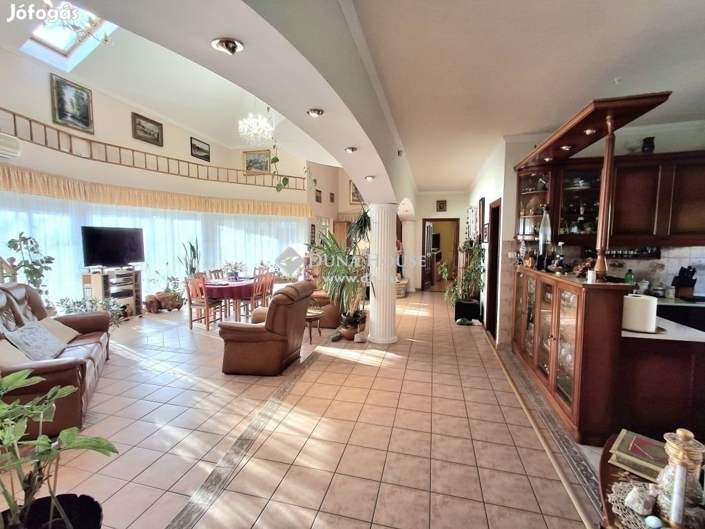 Debrecenben, a város közkedvelt Úrrétje városrészében eladóvá vált ez az impozáns és igényes kivitelezésű , 2004-ben épült, 250/320 nm-es, belső kétszintes, galériás, amerikai konyhás - nappalis + 5 szobás, dupla komfortos, családi ház egy hatalmas terasszal és dupla garázzsal 878 nm-es telken!