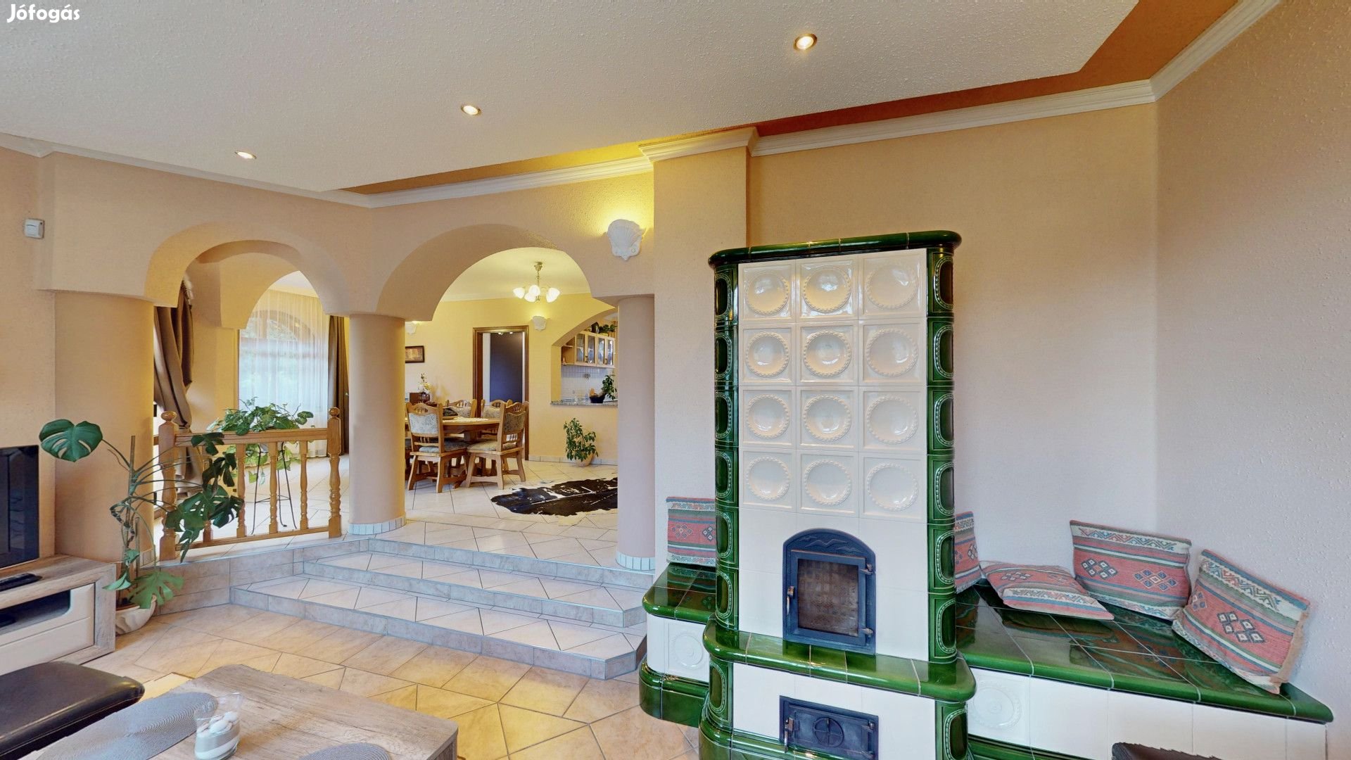 Debrecen, Felsőjózsa, Északi soron lévő valódi édes otthon eladó. A telek É-D-i tájolású, 1246 m2-es, melyen található a 2003-ban 38 cm-es téglából épített, hőszigetelt, földszint + tetőtérbeépítéses, 163 m2 nettó alapterületű nappali, 4 hálós, 2 fürdőszobás igényes családi ház, plusz egy 23 m2-es garázs. 2005-ben épült egy szintén téglaépület, 42 m2-es alapterülettel, mely iroda, műhely, tároló szerepet is betölthet. Az udvaron van egy fa szerkezetű filagória, búboskemencével, bográcsozóval, kinti konyhával és étkezőhellyel, továbbá egy 6x3 m-es, 110 cm-es vízszintű fedhető medence, vízforgató- és szűrő berendezéssel. Található még fatároló, és gyümölcsfák a szépen füvesített kertben, mely automata öntözőrendszerrel ellátott. Fűtés gáz- és vegyestüzelésű kazánnal is lehetséges, hőleadók radiátorok, illetve egy szép padkafűtéses cserépkályha is a rendszer része, az emeleten pedig egy hűtő-fűtő klímaberendezés is felszerelésre került. Az ingatlan per-, tehermentes, nyilvántartása rendezett, hitelezhető, költözhető állapotban van, rezsi alacsony, az utca csendes, szomszédok nagyon jók. Az ingatlanról 3D-s virtuális séta is készült, mely a világ bármely pontjáról elérhető és valós betekintést nyújt az épületbe. Igény szerint, akár teljes bútorzottal is eladó. Tovább információkért, illetve személyes megtekintés időpont egyeztetéséért keressen elérhetőségeimen! KERESŐKNEK SZOLGÁLTATÁSOM INGYENES!
